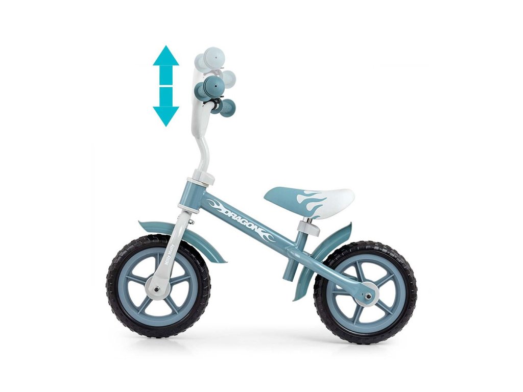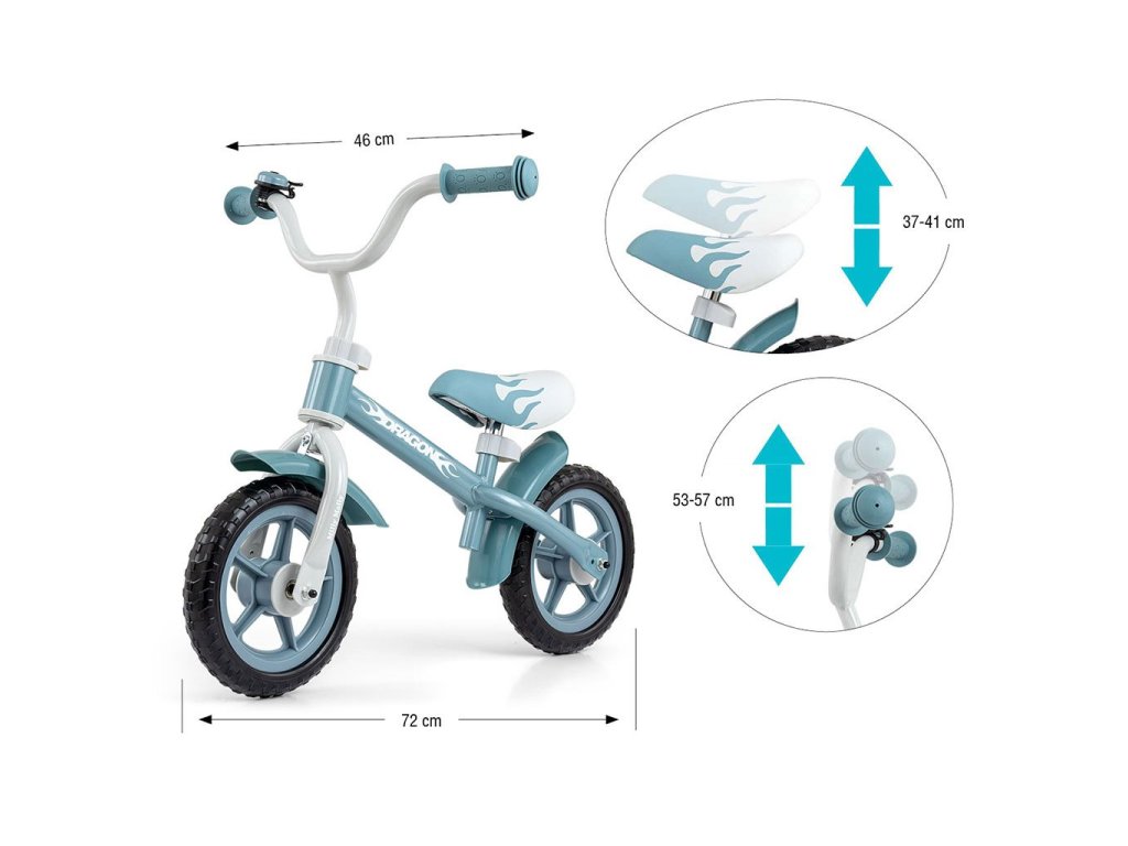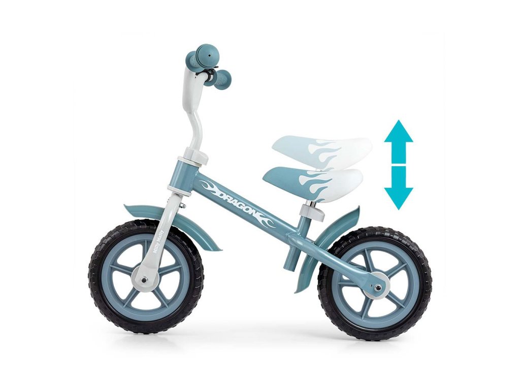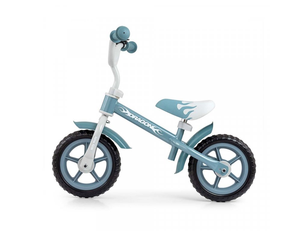 Dětské odrážedlo-kolo Milly Mally Dragon je ideální, když se dítě učí udržet rovnováhu. Je tou nejlepší alternativou pro kolo s bočními kolečky, takže pozdější jízda na klasickém kole bude mnohem jednodušší. Kolo je bez pedálů, díky čemuž se dítě dokáže soustředit hlavně na držení rovnováhy a směr jízdy.