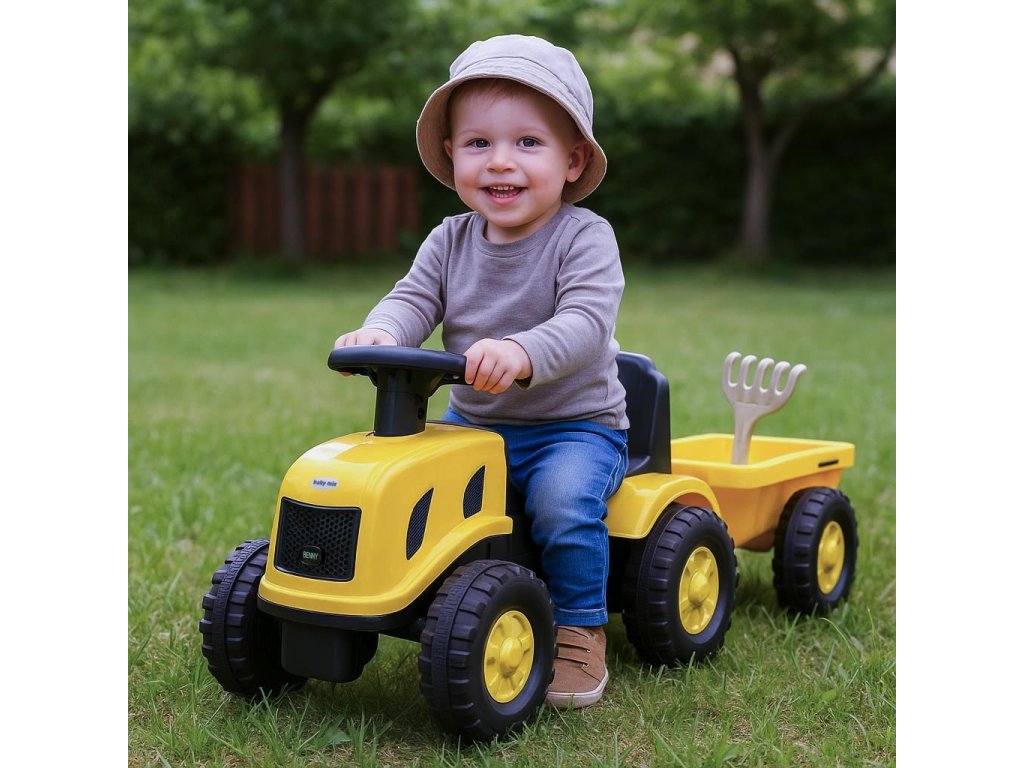 Dětské odrážedlo traktor s vlečkou Benny Baby Mix žlutý