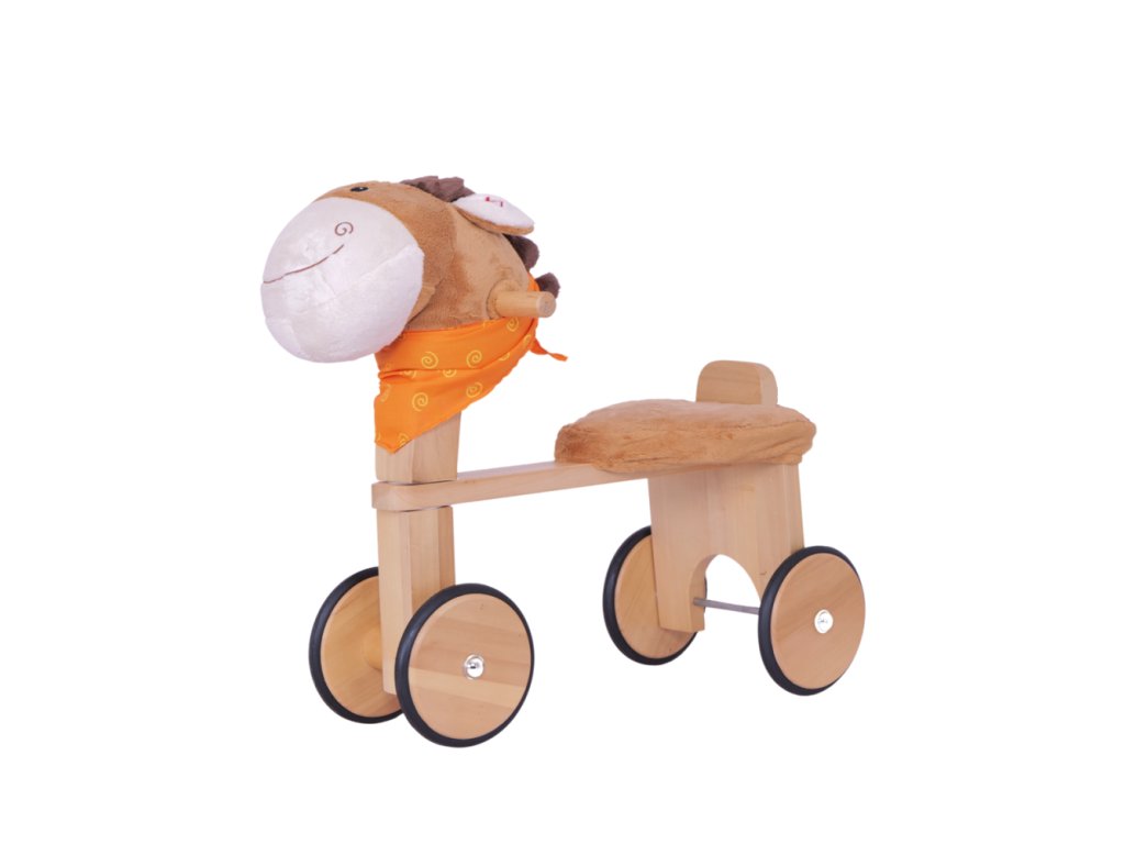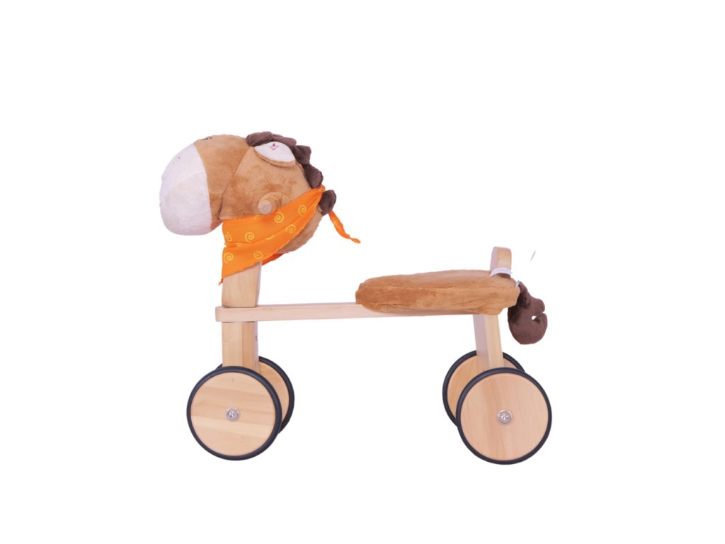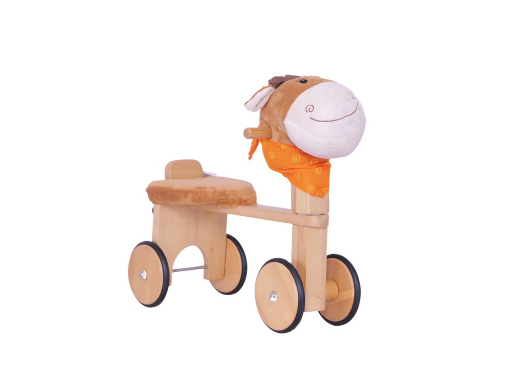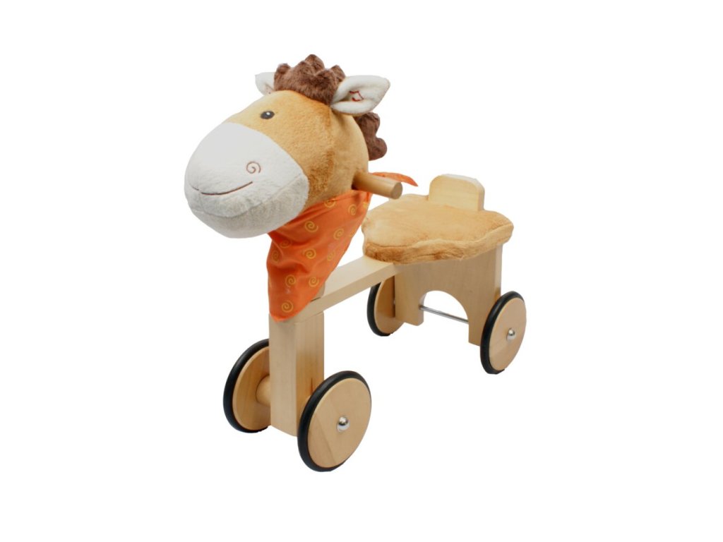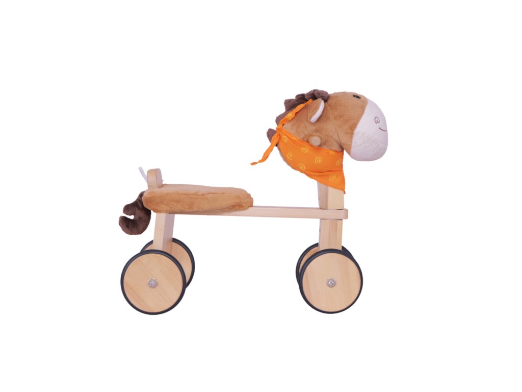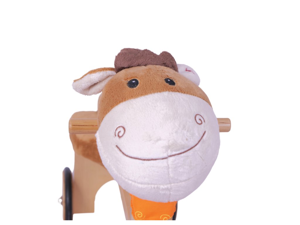 Usměvavého koníka si zamiluje každé malé dítě od 18 měsíců. Tento všestranný pomocník slouží jako odrážedlo, ale může se použít také jako pomůcka při chůzi. A dokonce hraje příjemnou dětskou melodii! Je ideální pro hravé objevování světa doma i venku. Díky pevné konstrukci a odolným kolečkům s gumovými pásy nabízí bezpečný pohyb a podporuje rozvoj rovnováhy, koordinace i jistoty při chůzi. Veselý koník s milým výrazem podněcuje dětskou fantazii a přirozenou touhu po pohybu. Skvělá volba, která spojuje funkčnost, bezpečí a radost ze hry. Díky hravému designu, přírodním barvám a roztomilému obličeji se stane pěkným doplňkem dětského pokoje nebo herny. Testováno podle nejpřísnějších bezpečnostních norem EN 71.