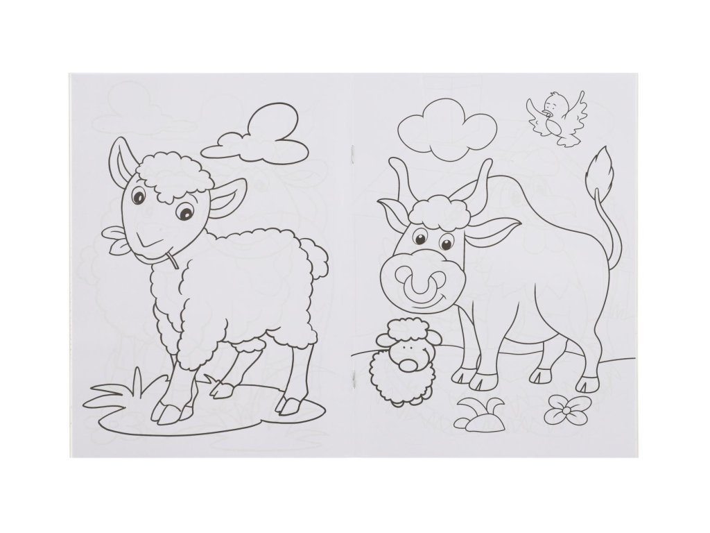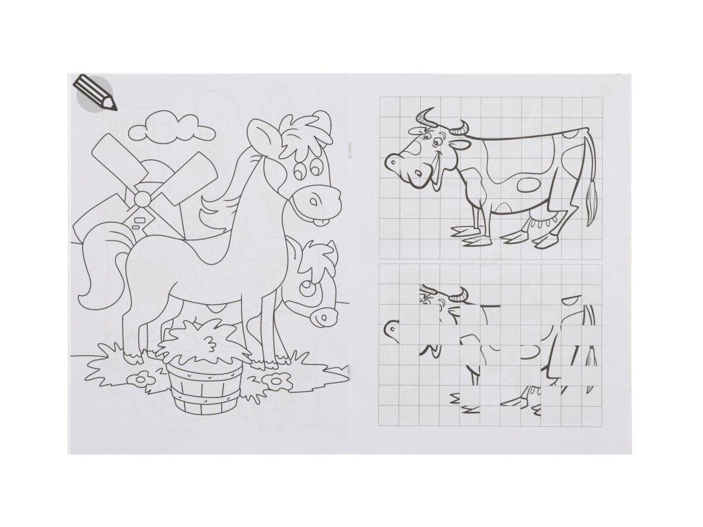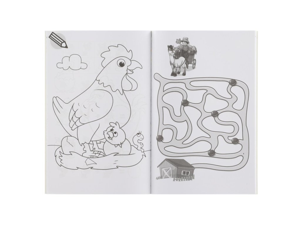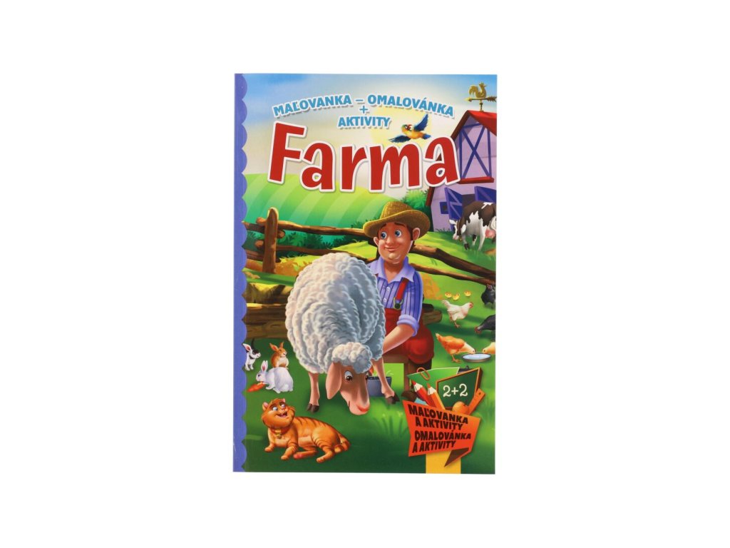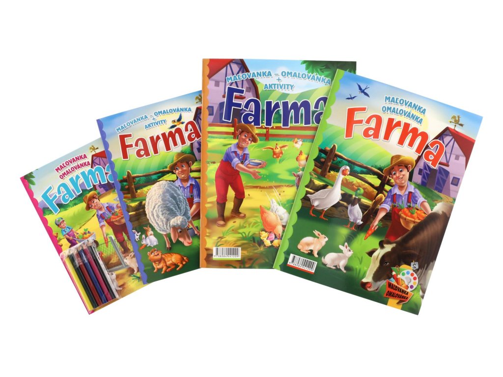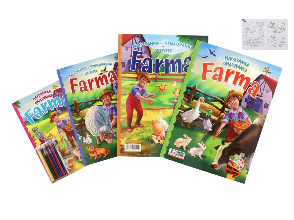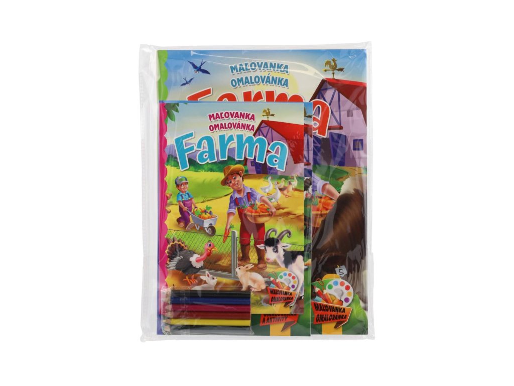 Omalovánky+aktivity/Maľovanky+aktivity Na farmě/Na farme 4ks + pastelky CZ+SK verze v sáčku 21x29cm