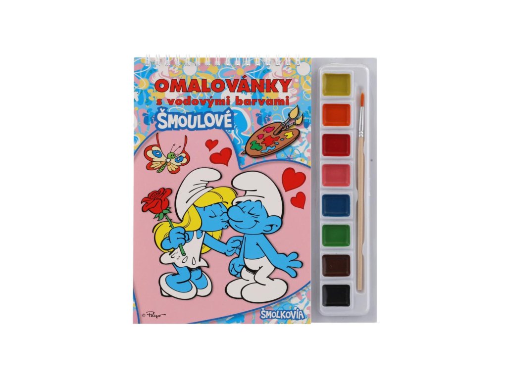 Omalovánky Šmoulové s vodovými barvami a štětcem, kroužková vazba 21x23cm