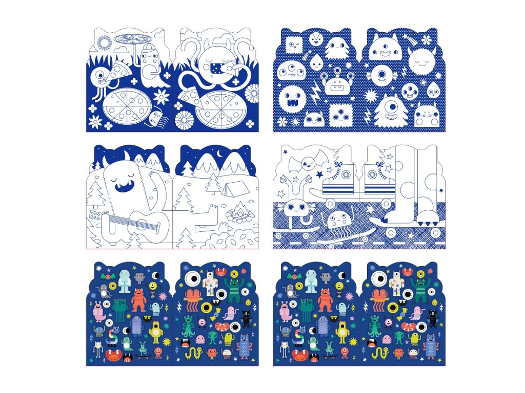 Připravte pastelky pro tyto děsivě rozkošné příšerky! Najdete zde výjevy, kde strašidelná monstra hrají v kapele, lebedí si na dobrůtkách, užívají si zimu či tancují uprostřed hrůzostrašného lesíku! Scény lze po vybarvení dozdobit prvky z velké sady přibalených pestrobarevných samolepekJednoduché roztomilé tvary děti nadchnou a rozjitří jejich fantazii