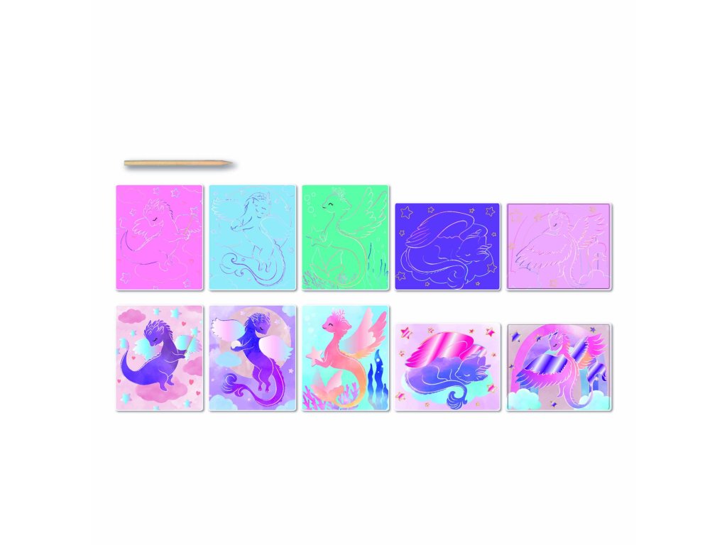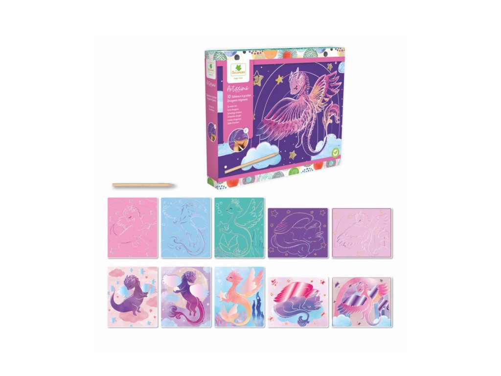 Škrabací obrázek Dráčci 10ks 20x24cm v krabičce 26,5x22x4cm