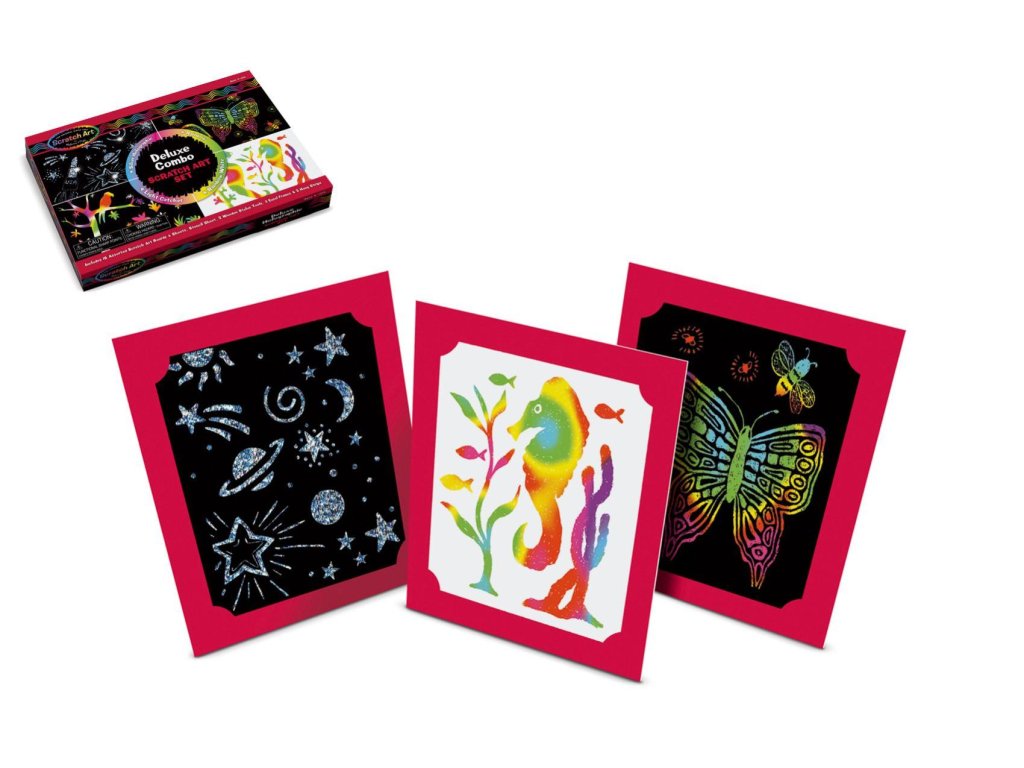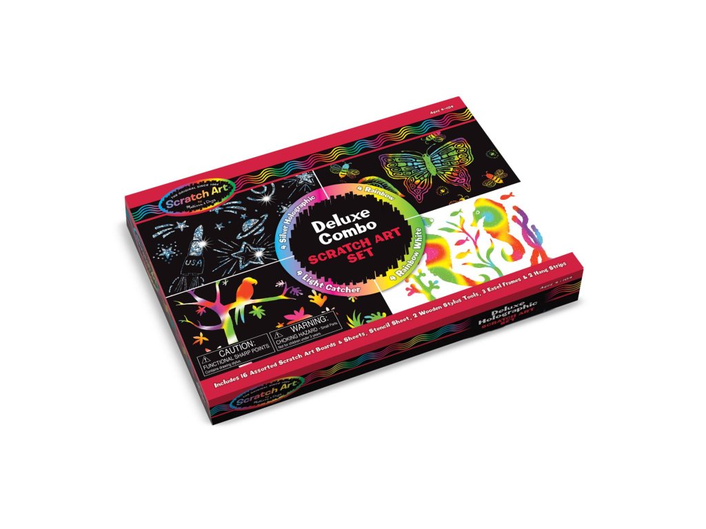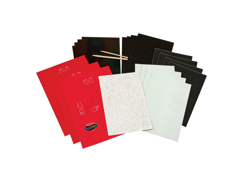 Parádní vyškrabovací sada! Tato sada obsahuje materiál pro 16 různých barevných podkladů pro vytvoření uměleckých výtvorů dětí. Je možné vyškrabávat podle vlastní fantazie nebo podle šablon v sadě.Velikost obrázků: 14 x 21, 5 cm