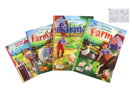 Omalovánky+aktivity/Maľovanky+aktivity Na farmě/Na farme 4ks + pastelky CZ+SK verze v sáčku 21x29cm