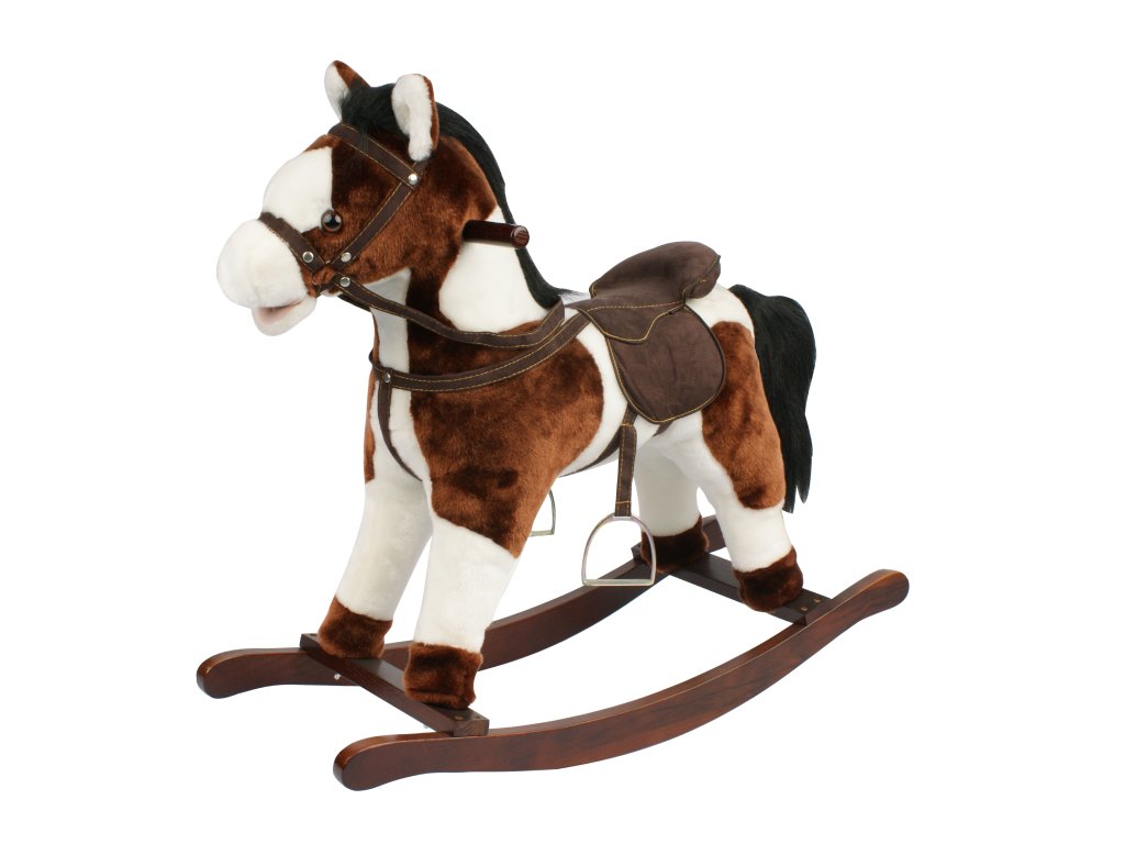 Houpací kůň hnědobílý - výška sedátka 46 cm, zvukové efekty koně, pohyblivá tlama a ocas