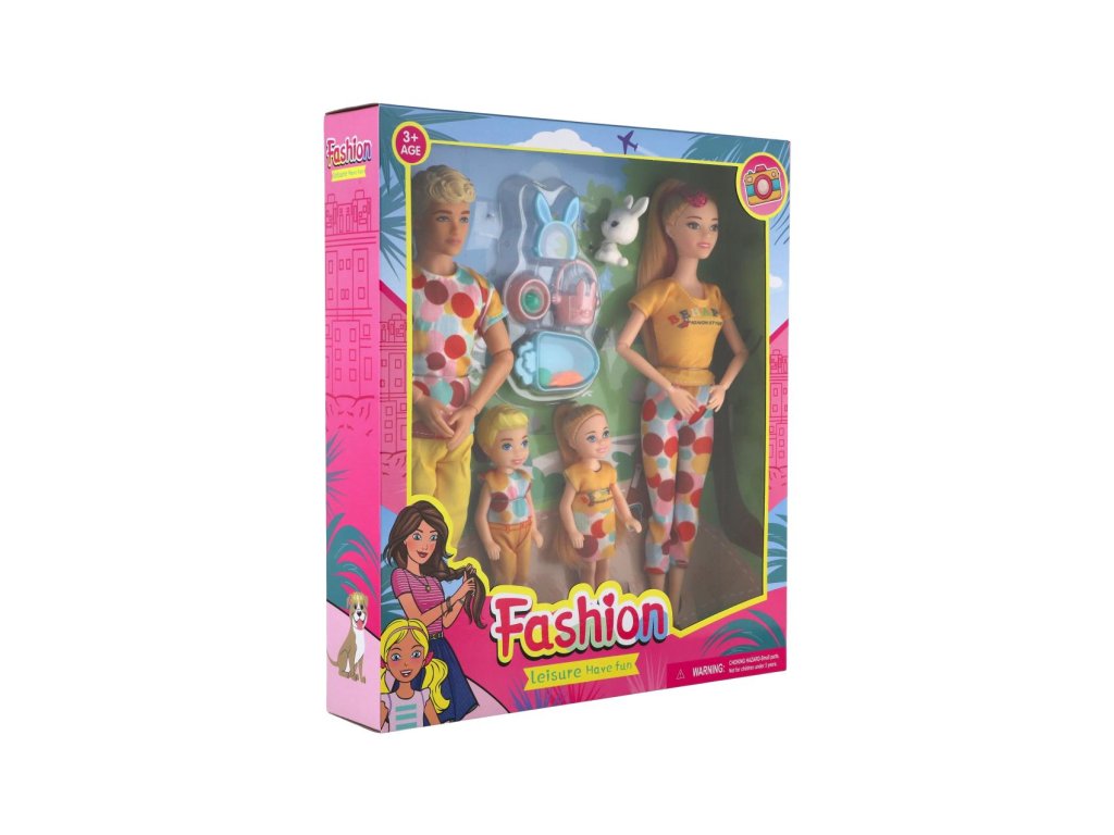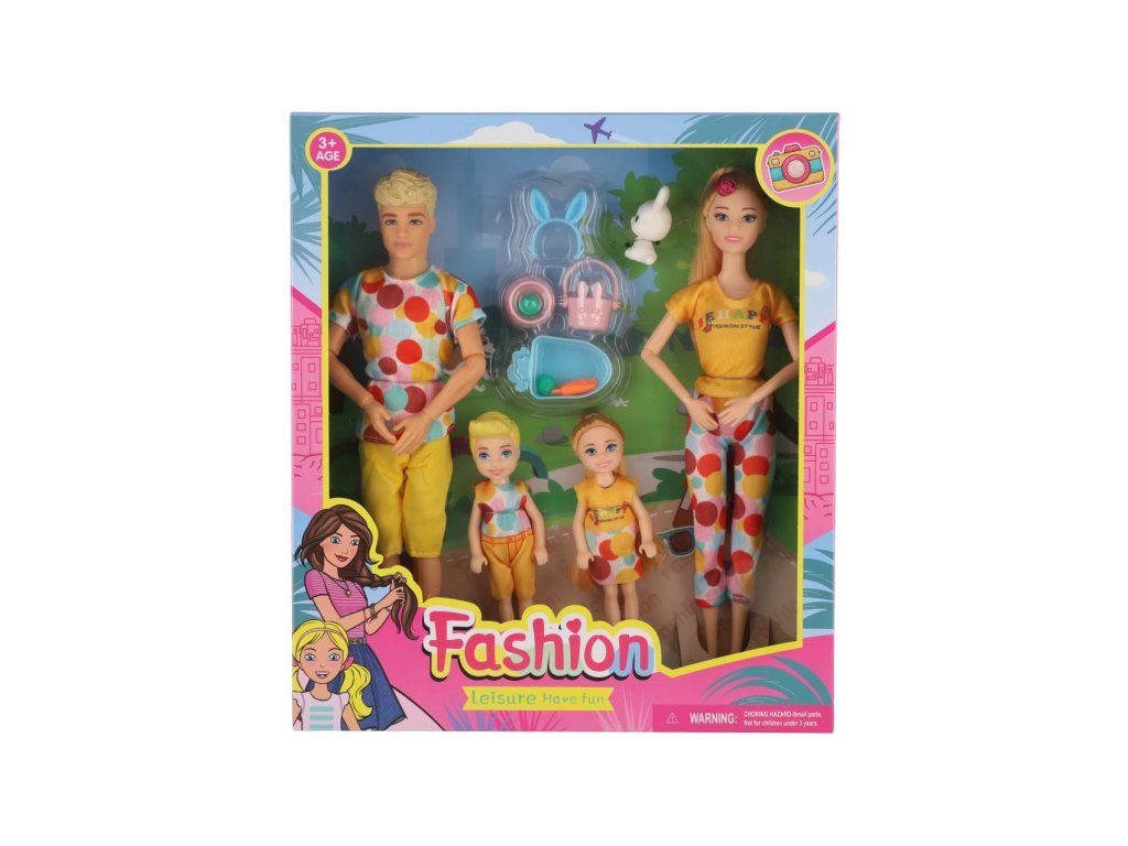 Sada panenek představující kompletní rodinku je ideální pro hraní na domácnost, výlety nebo péči o domácího mazlíčka. Figurky mají pohyblivé části těla a jsou oblečeny do barevně sladěného oblečení. Součástí balení jsou i doplňky jako králíček, košíček a další nezbytnosti pro dětskou hru.Set obsahuje celkem 4 postavy – maminku, tatínka a dvě děti.