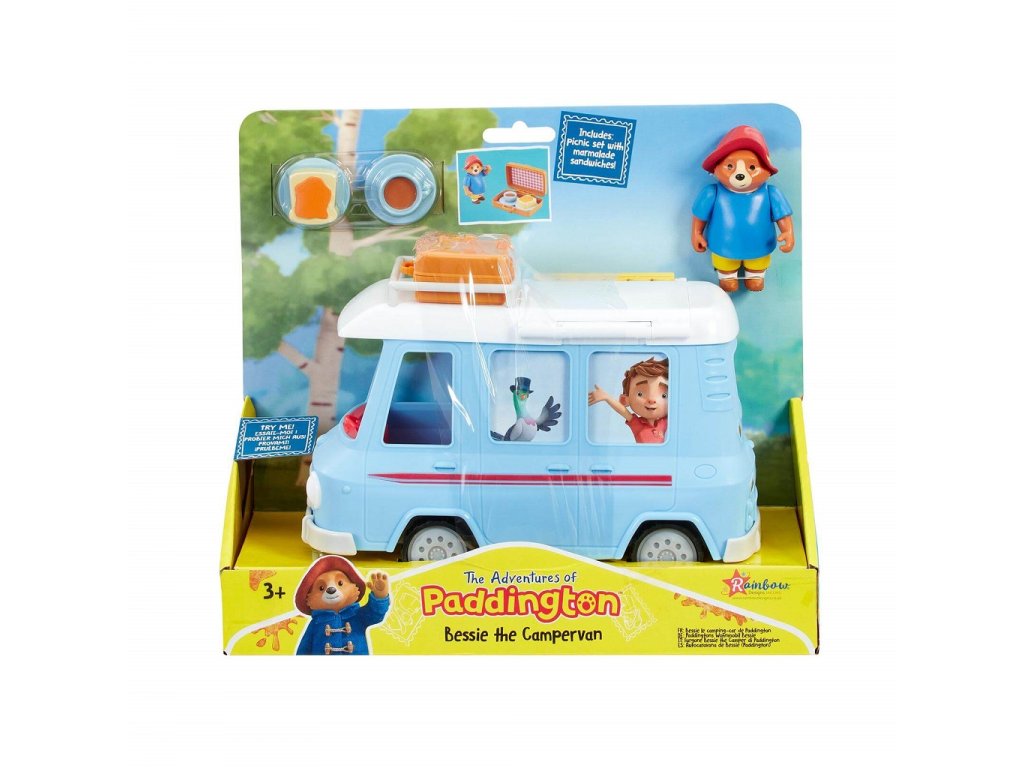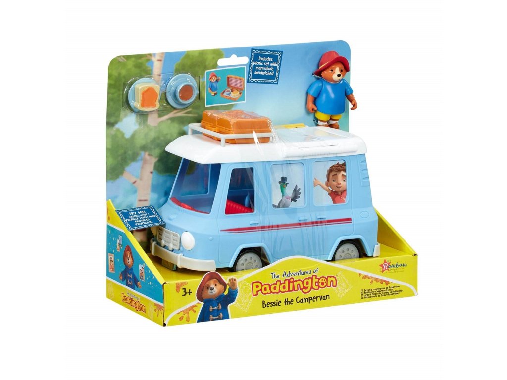 Brm brm! Karavan Bessie je připraven... Čas vzít Paddingtona na dobrodružství! Uvnitř karavanu je spousta místa nejen pro medvídka a jeho přátele. Díky odnímatelné střeše máte při hraní přehled co se v autíčku děje. Až přijde čas na občerstvení, rozložte dečku a otevřete kufřík, abyste odhalili šálek čaje a marmeládový sendvič! Při stisknutí grilu uslyšíte až 5 různých zvuků, včetně hlasu medvídka Paddingtona či zábavnou hudbu z televizního pořadu. Tato herní sada s obytným vozem je plná zábavy a aktivity, která děti inspiruje k nápadité hře. Vhodné pro malé fanoušky pohádky Paddington.