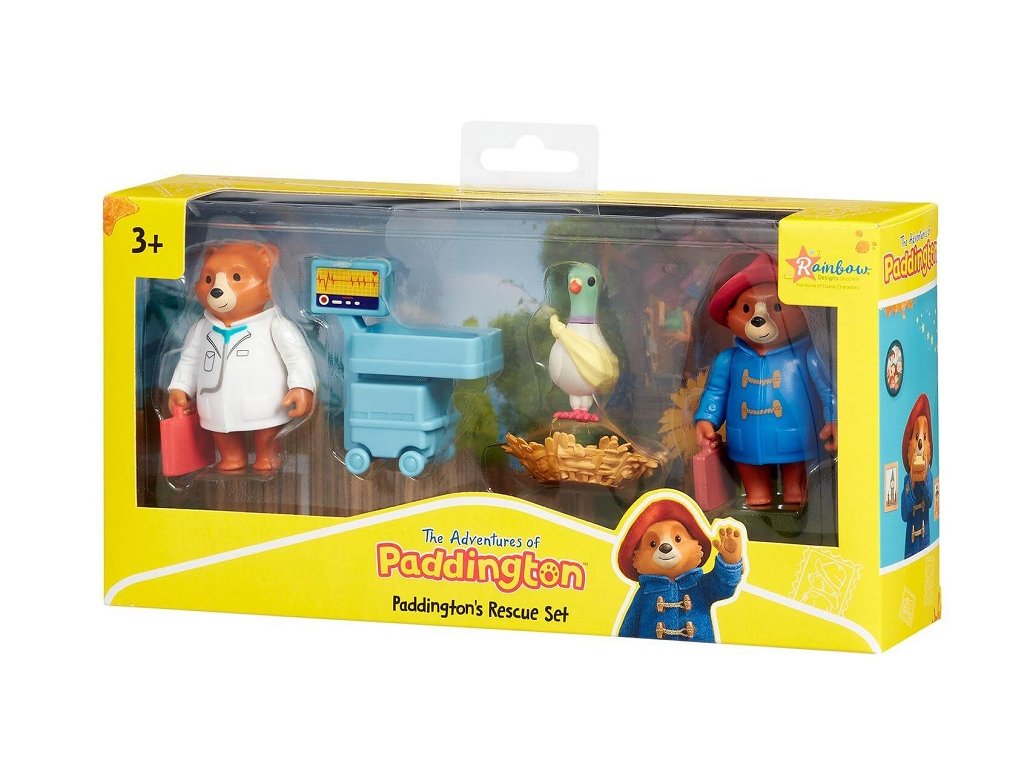 Tato zábavná záchranná sada obsahuje nejen medvídka Paddingtona ve slavném modrém kabátku a červeném klobouku, ale také jeho kamaráda Pidgeontona! Stala se nehoda a chudák holub Pidgeonton si poranil křídlo. Naštěstí je po ruce pan doktor Paddington, vybavený lékárničkou, aby se jeho přítel znovu cítil lépe! K dispozici je také vyšetřovací stůl, ideální pro holoubkovu velikost, s pohyblivými kolečky a obrazovkou. Postavy medvídka mají pohyblivé paže a jsou velikostně kompatibilní s ostatními herními sadami kolekce The Adventures of Paddington. Herní sada je plná zábavy a děti inspiruje k nápadité hře.