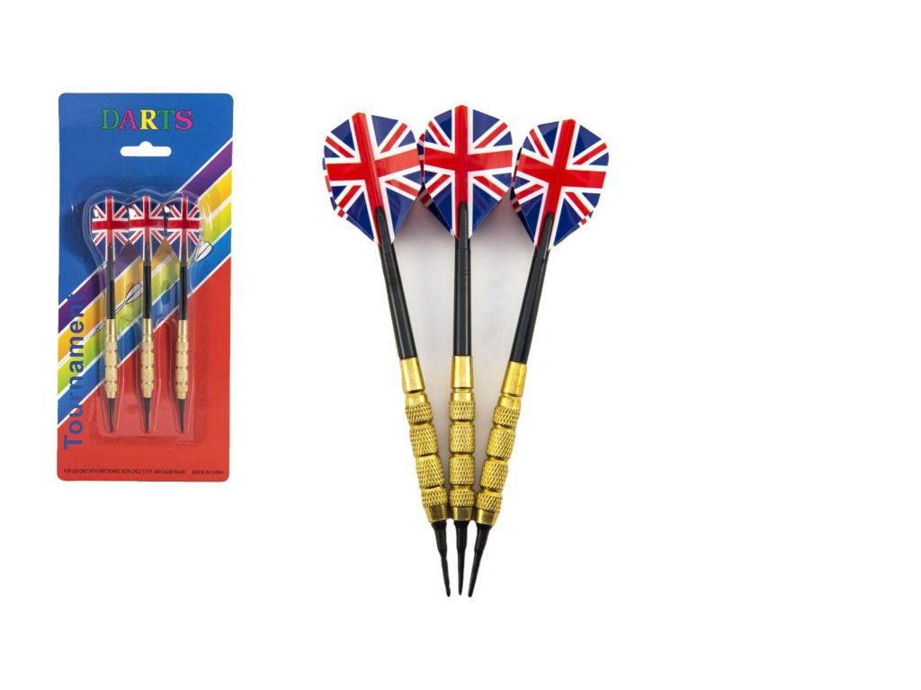 Sada házecích šípek s motivem vlajky USA. Házecí šipky jsou s vyměnitelnou násadkou a letkami a mají kovové hroty.Vhodné od 3 let.