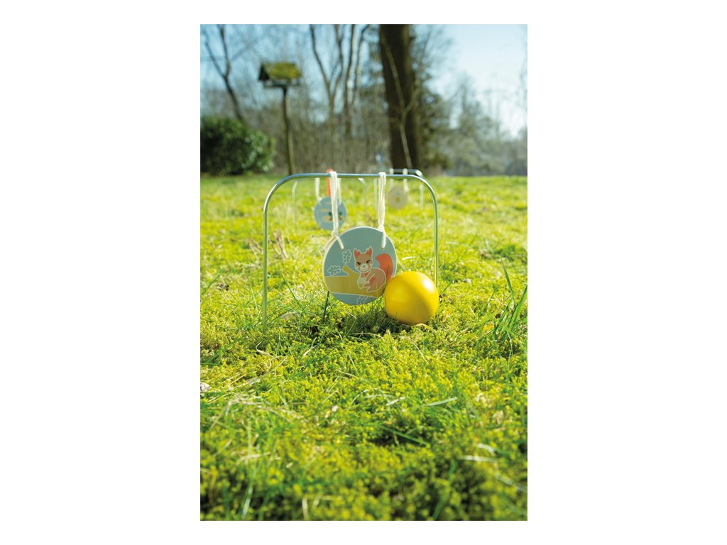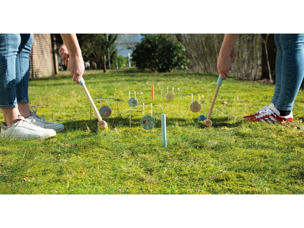Rodinná zábava s roztomilými motivy zvířátek! Tato klasická venkovní hra pro všechny věkové kategorie je perfektní na zahradu, do parku nebo na pláž. Je vyrobena z robustního dřeva a obtížnost hry je možné přizpůsobit věku a schopnostem hráčů. Kolečka k zavěšení na branky s roztomilými motivy zvířat (veverka, ježek, králík, sýkora modřinka a žabka) povzbuzují děti ke správnému zamíření na cíl. Branky lze snadno zapíchnout do země. Oddělitelná držadla paliček a praktický látkový pytlík umožňují pohodlné skladování a přepravu, takže si sadu můžete vzít kamkoli s sebou. Kroket můžete zkombinovat s dalšími hrami z produktové řady Garden Buddies, které nabízejí spoustu zábavy a pohybu.
