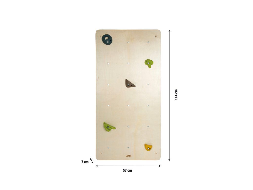 Lezte, objevujte a zažívejte dobrodružství přímo v dětském pokoji! Tato velká lezecká stěna z kvalitního dřeva přináší hodiny aktivní zábavy. Panel je vybaven 18 předvrtanými otvory se závity, které umožňují snadné přemístění nebo doplnění lezeckých chytů bez nutnosti demontáže celé stěny. Díky tomu můžete obtížnost lezení kdykoliv přizpůsobit schopnostem a věku dítěte. Součástí balení je 5 ergonomicky tvarovaných chytů, které jsou přilnavé a odolné – ideální pro první boulderingové zážitky v bezpečném domácím prostředí. Lezení rozvíjí nejen motoriku, sílu a koordinaci, ale posiluje i zdravé sebevědomí a vnímání vlastního těla. Svým přirozeným vzhledem stěna harmonicky zapadne do každého interiéru a skvěle doplňuje další pohybové prvky z řady Adventure. Pro bezpečnou instalaci jsou součástí balení 4 distanční podložky, které vytvářejí potřebný odstup panelu od zdi. Lezeckou stěnu lze navíc libovolně rozšiřovat o další samostatně prodejné sady chytů pro ještě více akce a výzev.
