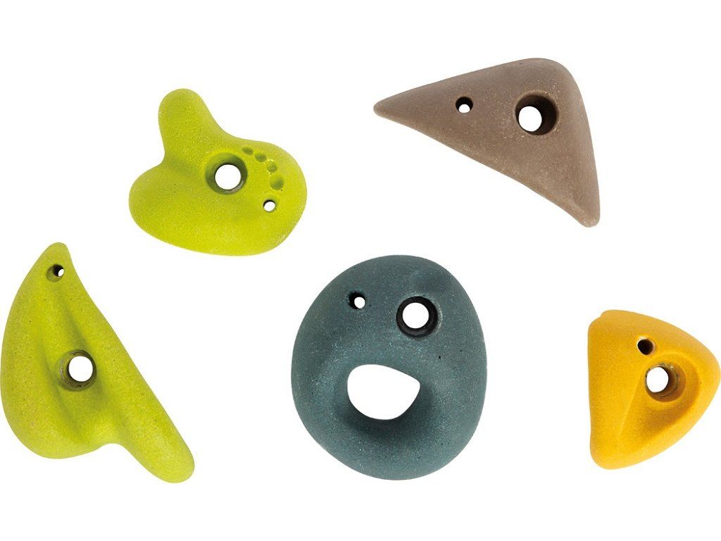 - obsahuje 5 přilnavých lezeckých chytů různých tvarů z odolného plastu