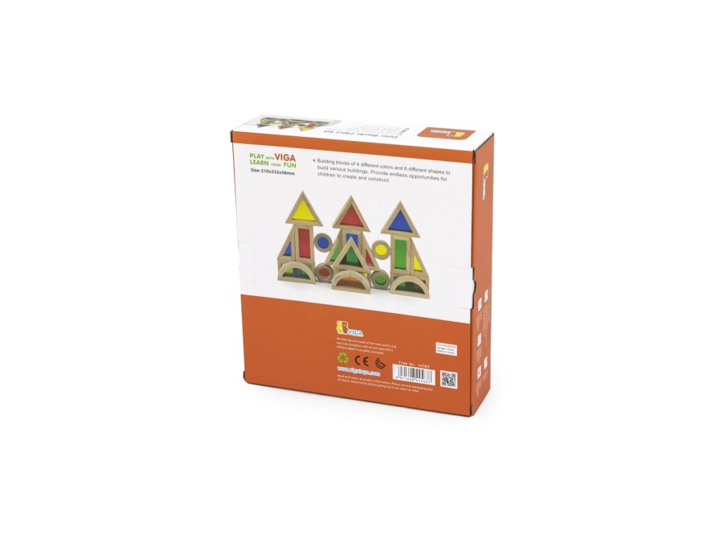Sada dřevěných barevných kostek. Balení obsahuje 24 kusů. Rozměr balení cca 23,5 x 21 x 6 cm. Věk 18m+Doplňkové parametry