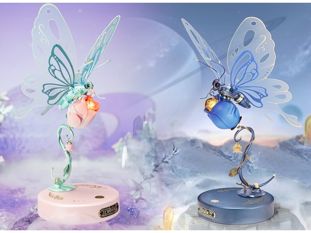 Informace pro B2B partnery: pro více informací k získání displeje jako podporu prodeje této značky na Vaší prodejně nás prosím kontaktujte. Mechanický růžový motýl je fascinující pohyblivá dekorace, která simuluje letový vzor skutečného motýla. Tento motýl je dodáván již ve složeném stavu. Motýl má motorizovaná křídla a světla, která vytvářejí okouzlující efekt. Pro správnou funkci je nutné elektrické napájení. Tento motýl lze také zakoupit jako 3D mechanickou skládačku MI05B (kód produktu) nebo s displejem MI05PA (kód výrobku). Hlavní vlastnosti: lehká obtížnostideální jako dárek nebo jedinečná dekoraceminiaturní planetární motorled osvětleníDoplňkové parametry