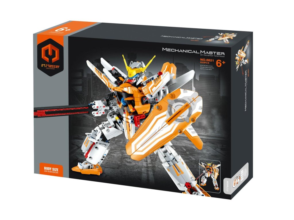 Tato stavebnice umožní sestavit impozantního robota s oranžovo-bílou výzbrojí, dlouhým mečem a masivním štítem. S více než 800 dílky, robota lze dynamicky rozpohybovat, pohyblivé ruce, nohy, hlava, zbraně. Atraktivní barevné provedení a futuristický vzhled. STEM vzdělávání: rozvoj mechanického myšlení, prostorové představivosti a motoriky.Rozměry balení 35 x 27 x 7 cm