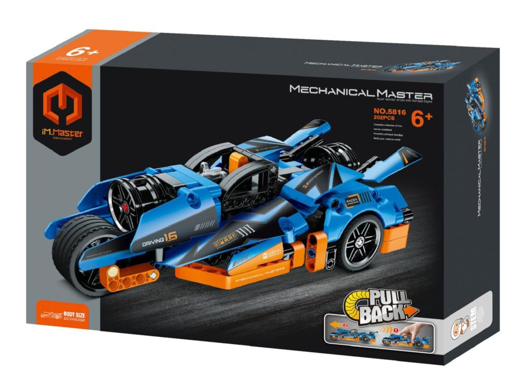 Stavebnice iM.MASTER tříkolka na zpětné natažení plast 202 dílků v krabici 29x20x6cm