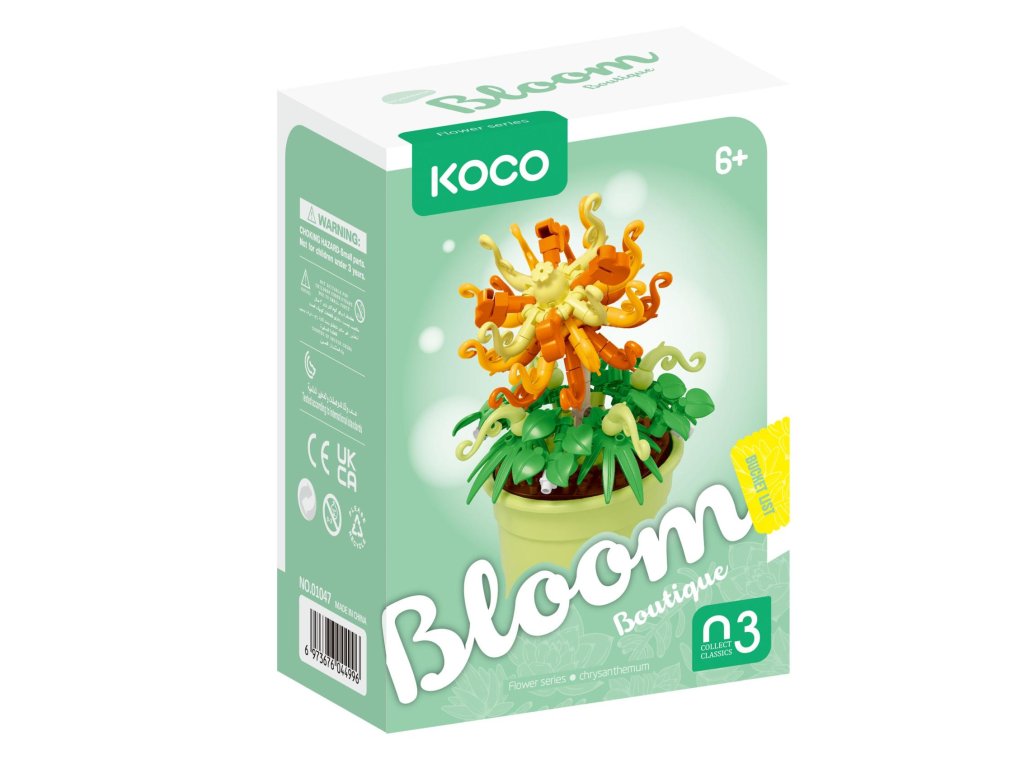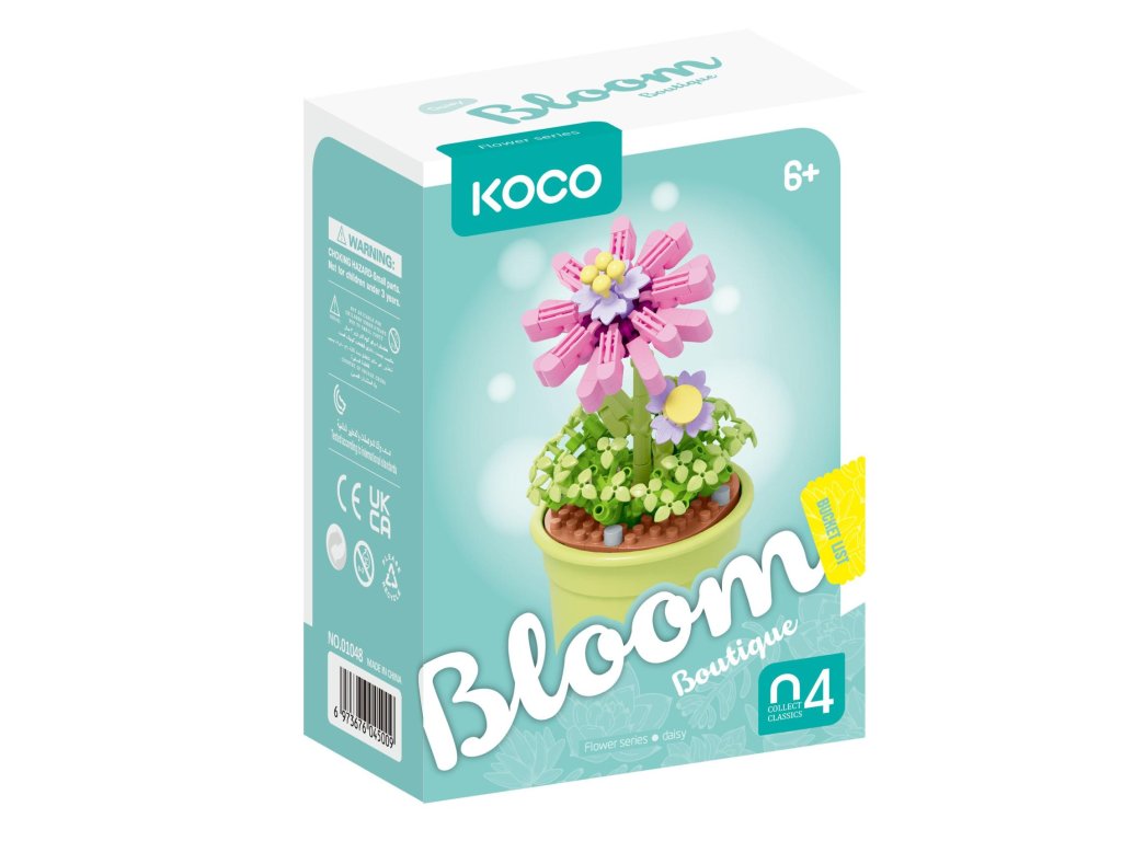 Vytvoř si barevnou květinu, která ti nikdy neuvadne! Mini stavebnice KOCO obsahuje dílky pro sestavení květiny v elegantním květináči, a to v celkem 6 různých variantách. Každý model je originální, ať už jde o tvar okvětních lístků nebo kombinaci barev. Ideální jako drobný dárek, kreativní dekorace na stůl nebo sběratelský kousek pro milovníky květin i stavebnic. Jednoduché složení zvládnou děti i dospělí – stačí jen trocha fantazie a radost je na světě!Rozměry balení: 10 × 14 × 6 cm
