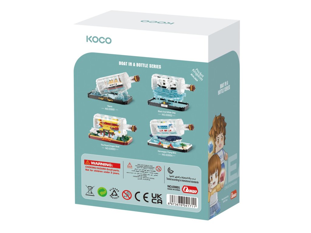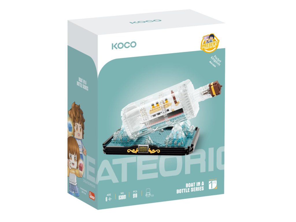 Stavebnice KOCO, to jsou velké příběhy v malých detailech. Sestavte si krásný model Titanicu v láhvi. Skvělý tip pro procvičení jemné motoriky rukou. Balení obsahuje podrobný obrázkový návod.Počet dílků: 918 ks