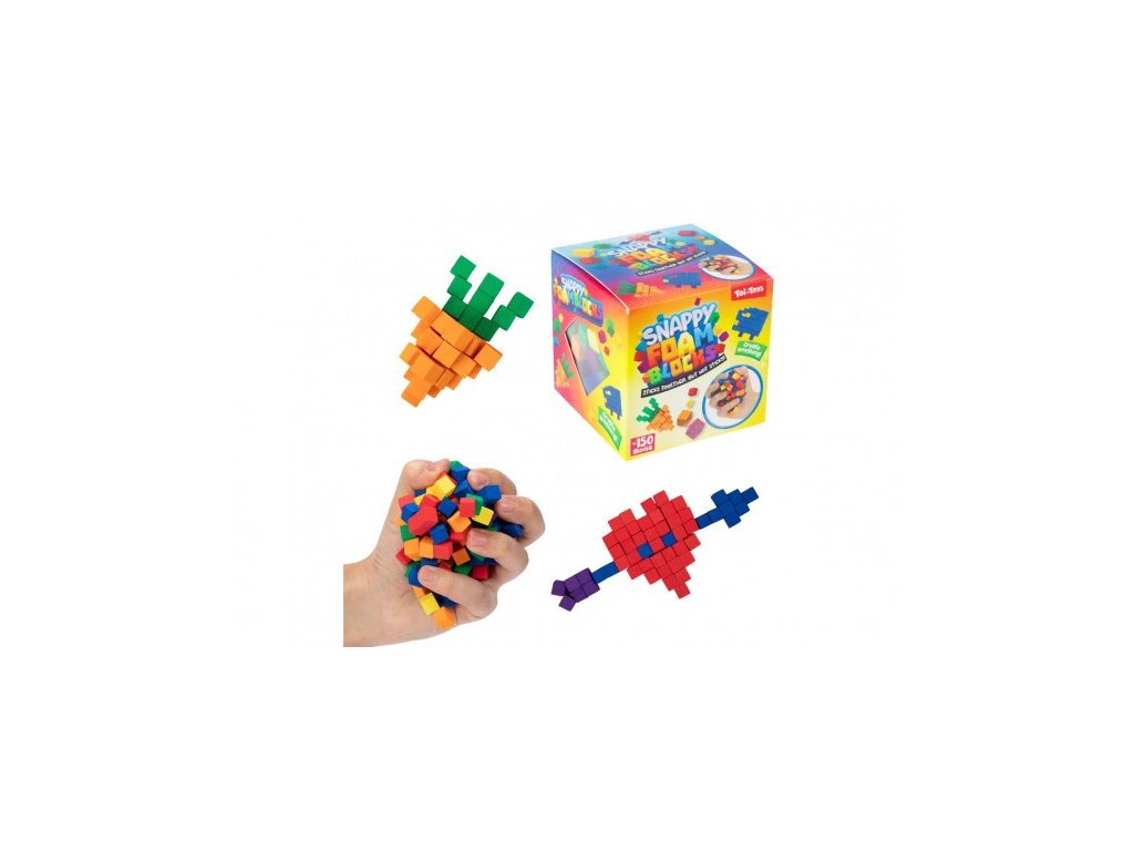 Barevná kreativní stavebnice s více než 150 mini pěnovými kostičkami potěší všechny malé stavitele. Díky speciálnímu povrchu kostičky snadno drží pohromadě bez použití lepidla – jednoduše je přitlačíte k sobě a můžete tvořit libovolné tvary, postavy nebo předměty.Rozměry balení 8 x 8 x 8 cm