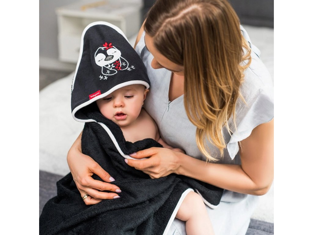 Bambusová osuška, ručník s kapucí Pinguin 85x85cm, černá, BabyOno