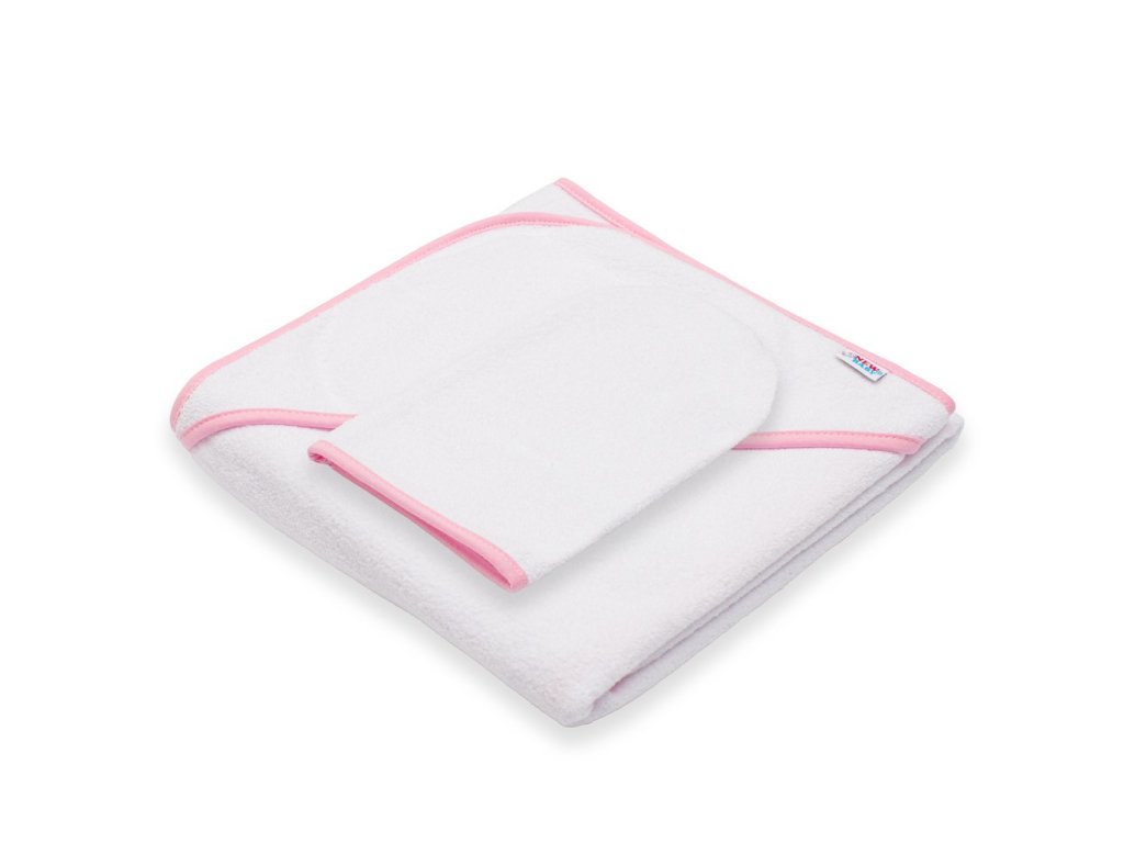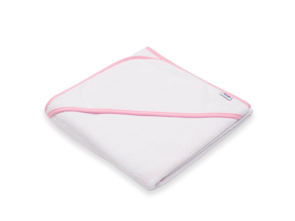 Dětská froté osuška s kapucí New Baby BASIC 80x80 bílo-růžová
