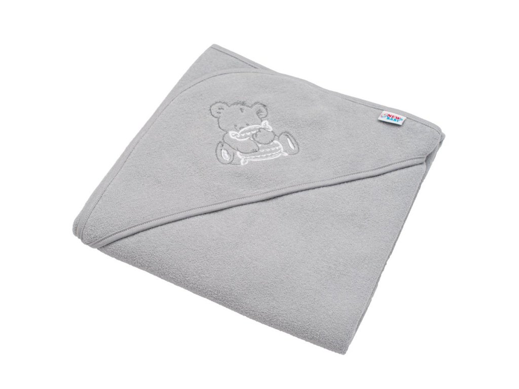Dětská froté osuška s výšivkou a kapucí New Baby 80x80 šedá medvěd