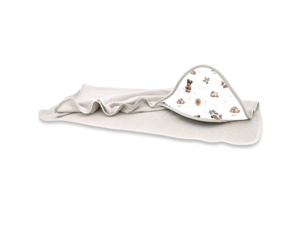 Dětská osuška 100x100cm, froté bavlna, Méďa pilot - bílá, béžová