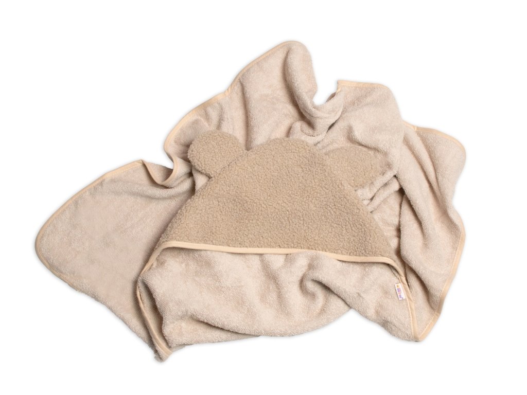 Kojenecká osuška s kapucí a oušky Boucle 80x80cm, froté - béžová, hnědá