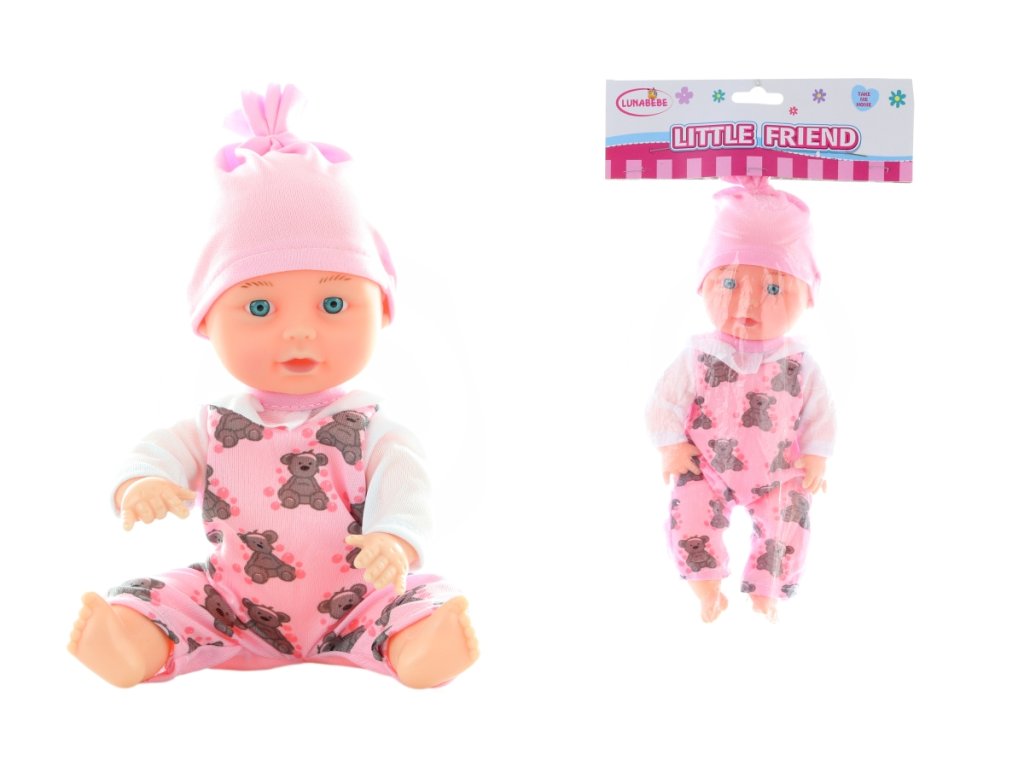 Miminko v pyžamku o rozměru cca 25 x 12 cm s lahvičkou. Materiál plast. Baleno v sáčku. Rozměr balení cca 31,5 x 18 x 7 cm. Věk 3+Doplňkové parametry