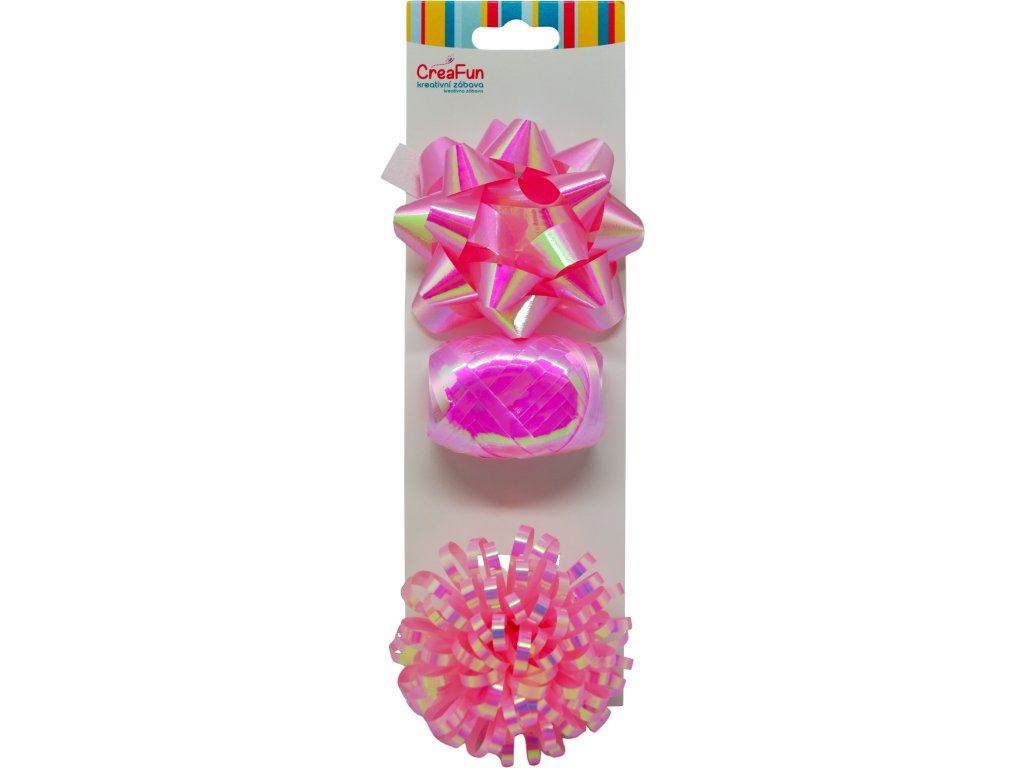 Dárková sada růžová duhově lesklá, 3 ks (stuha 10 m + 2 mašle)