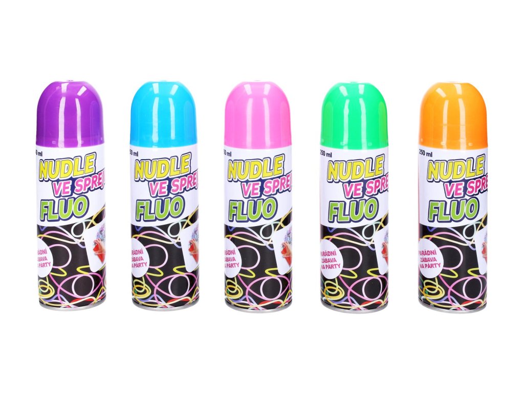 Nudle ve spreji FLUO/špagety ve spreji 17cm 250 ml 5 barev karneval (1 ks)