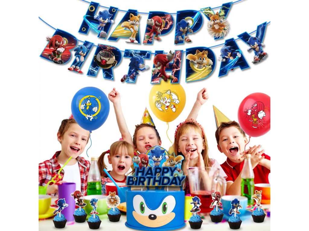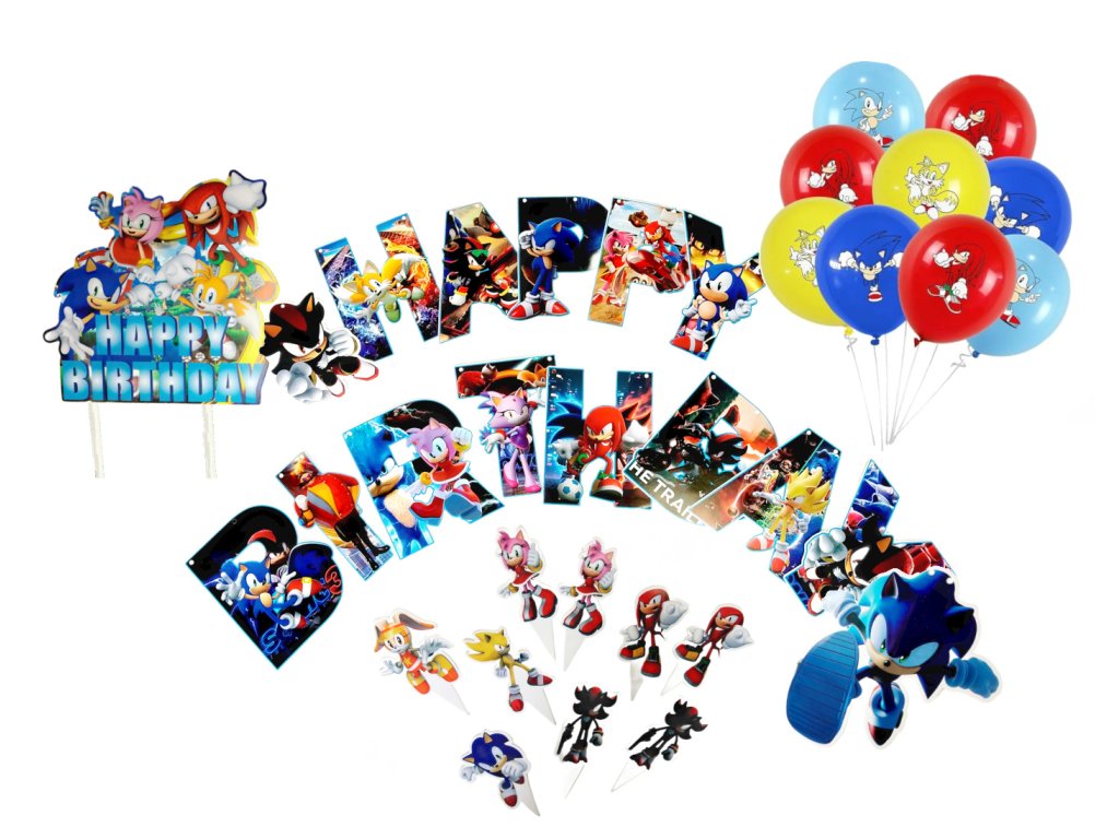 Velká narozeninová sada Ježek Sonic a přátelé obsahuje 42 dekorativních prvků, které rozzáří každou oslavu a přenesou děti přímo do světa rychlosti, dobrodružství a přátelství.Dominantou sady je výrazný nápis "Happy Birthday" s postavičkami jako Sonic, Tails, Knuckles, Amy, Shadow nebo Dr. Eggman. Všechny části jsou barevné, akční a laděné do světa populárního videoherního hrdiny.
