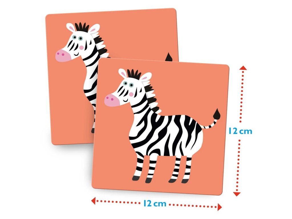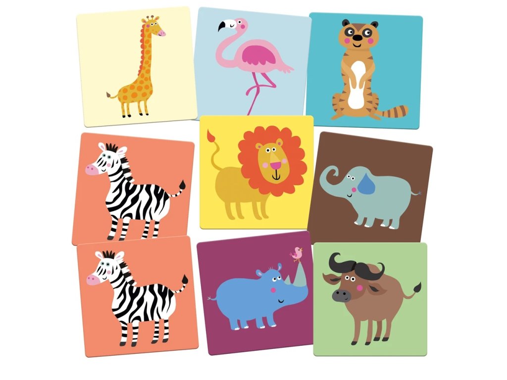 Tady je zebra, tam leží lev... Kdepak se skrývá slon? Pro tuto klasickou hru je nutná nejenom dobrá paměť, ale i trpělivost. Kdo najde mezi skrytými kartami nejvíce dvojic obrázků, vyhrává!