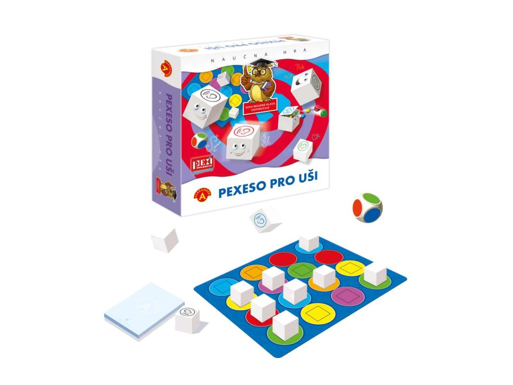 Princip hry „Pexeso pro uši“ spočívá v zapamatování zvuků rozložených kostek . Hráči se snaží posbírat co nejvíce párů kostek se stejným zvukem. „Pexeso pro uši“ je naučná hra, která zavede účastníky do světa zvuků. Jejím cílem je rozvoj pozorného naslouchání a cvičení zanedbávané sluchové paměti a její rozvoj a zdokonalení v poznávání barev.