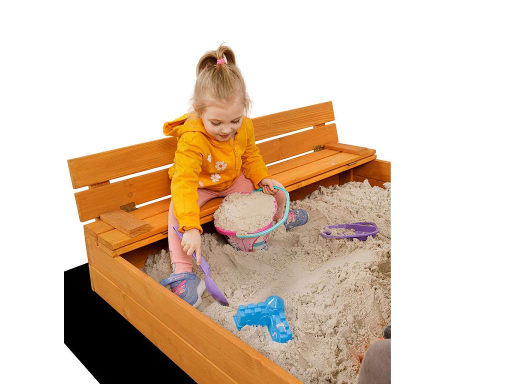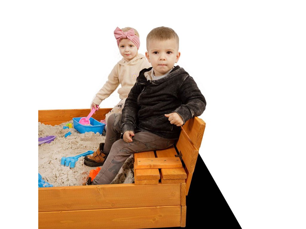 Nečekejte a dopřejte svým dětem skvělý zážitek z hraní s naším Dětským dřevěným pískovištěm s poklopem a lavičkami Baby Mix 120x120 cm!