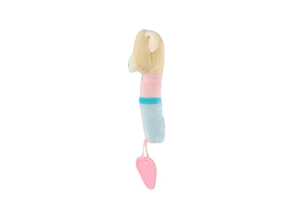 Plyšové pískátko pro miminka, hračka píská a má plastové kousátko. Každé miminko si tuto hračku jistě zamiluje.Velikost hračky: 22 cm