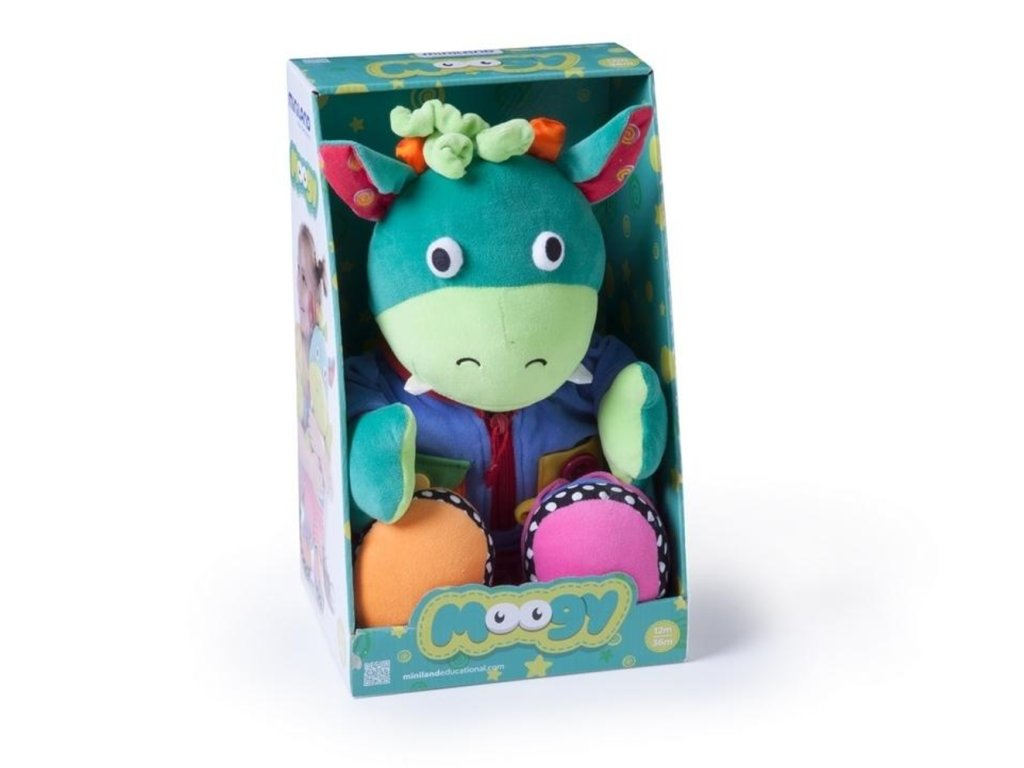 Moggy – první skutečný přítel dítěte testuje jeho emoce.Jeho veselé barvy a okouzlující vzhled z něj dělají společníka během různých her. Dítě se postupně naučí zapínat zip, knoflíky nebo vázat šňůrky. Díky této dovednosti se budou moci děti v budoucnu oblékat samostatně.
