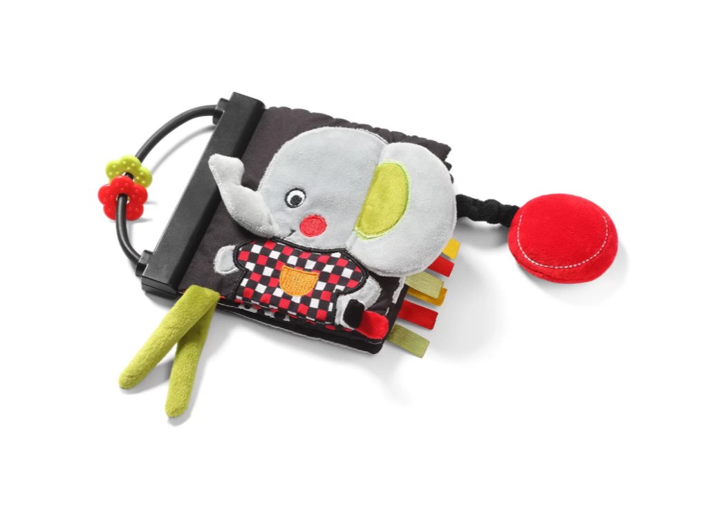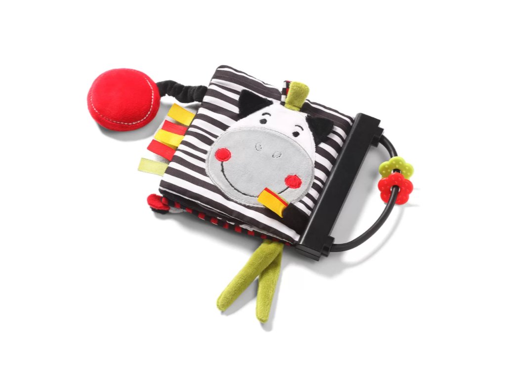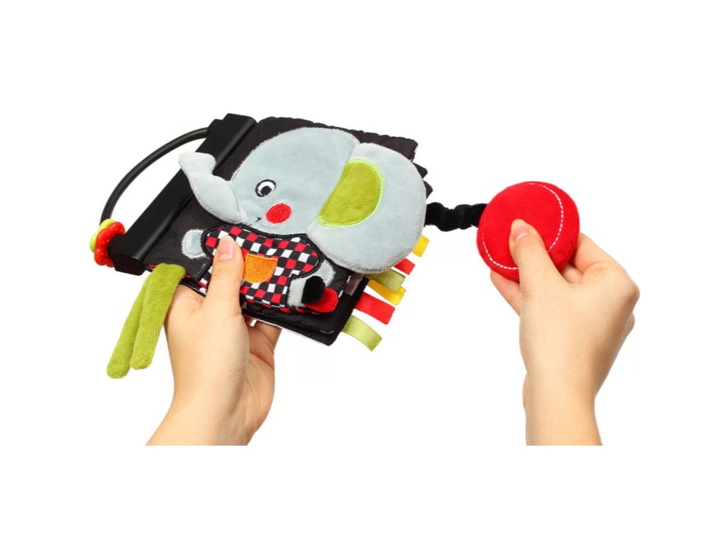 Edukativní knížka umožňuje získávat nové dovednosti, od nácviku úchopu, přes stimulaci práce dásní pomocí kousátek s výstupky na rozích. Stimuluje smysly zraku, hmatu a sluchu.Stimuluje zrak díky červené a černé barvě, kterou dítě vidí jako první.