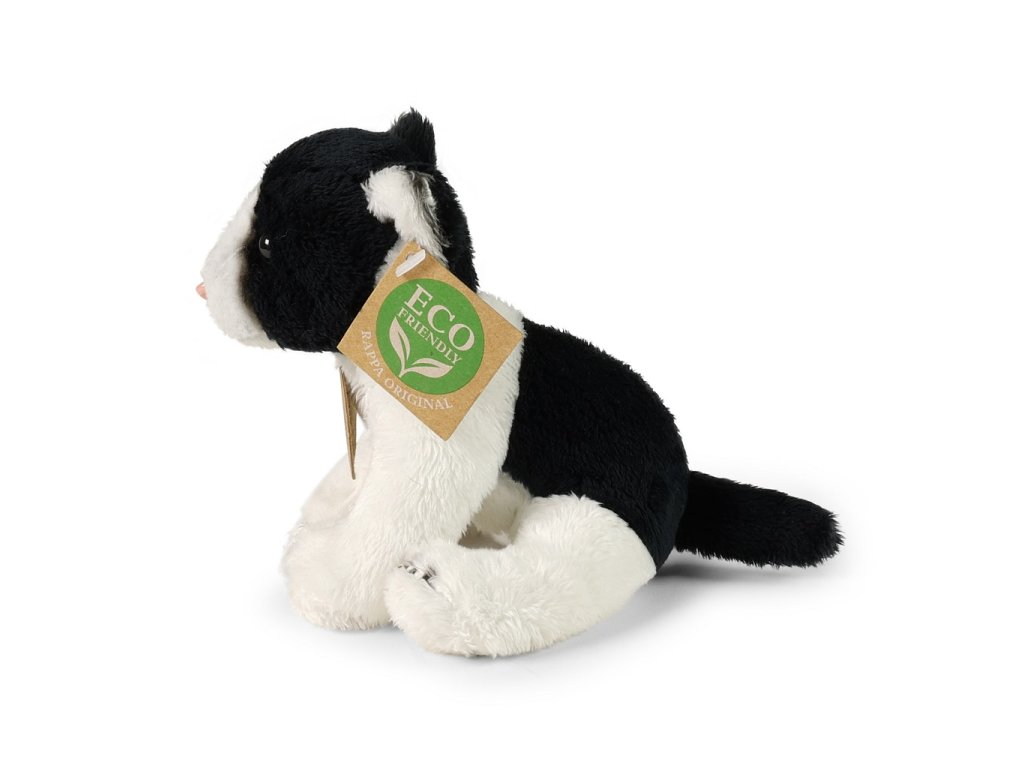 Rappa Plyšová kočka sedící černo-bílá 14 cm ECO-FRIENDLY