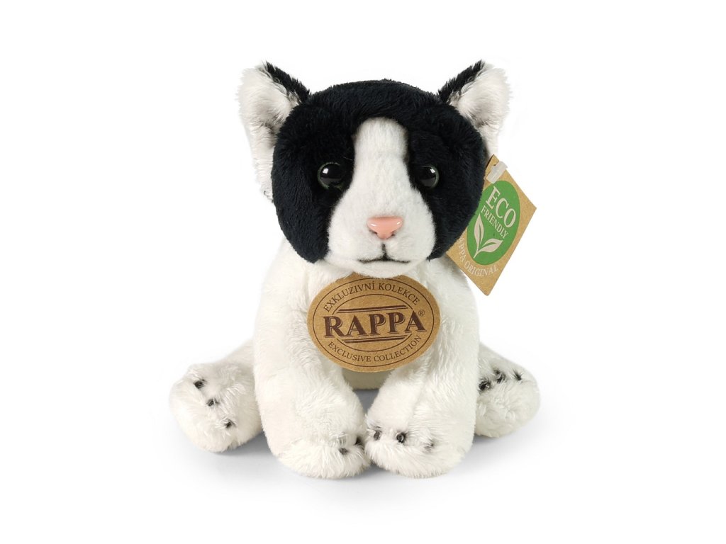 Plyšová kočka sedící černo-bílá o velikosti 14 cm je vyrobena z nejkvalitnějších materiálů a patří do exkluzivní kolekce plyšových hraček značky Rappa. Každý kus je pečlivě ručně zpracován, díky čemuž působí velmi realisticky a připomíná skutečné zvíře.