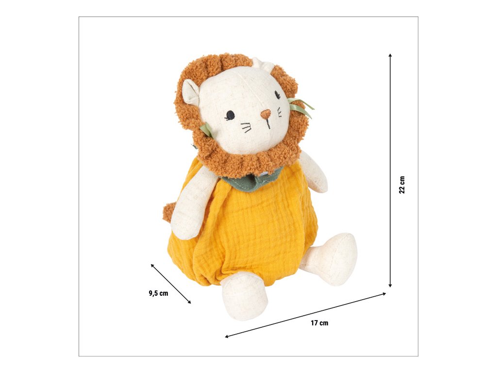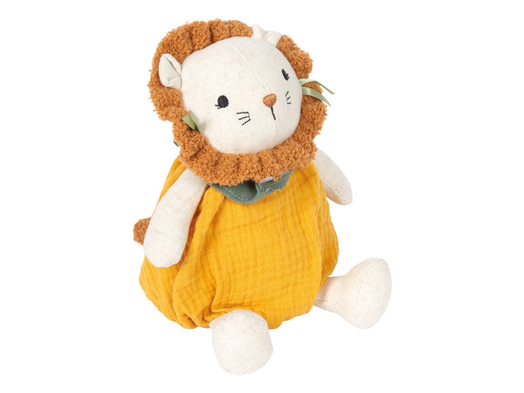 Tento roztomilý plyšový Lvíček je ideálním prvním kamarádem pro miminka a batolata. Hebký povrch, měkce polstrované tělo a dětem přizpůsobený design poskytují pocit bezpečí a pohodlí a zároveň podporují hravé objevování světa. Texturovaná mušelínová látka nabízí dětem zajímavý povrch, který láká k dotýkání, uchopování a přirozeně podporuje rozvoj smyslů i jemné motoriky. Ať už v postýlce, kočárku nebo na cestách, lví plyšák je vždy nablízku.