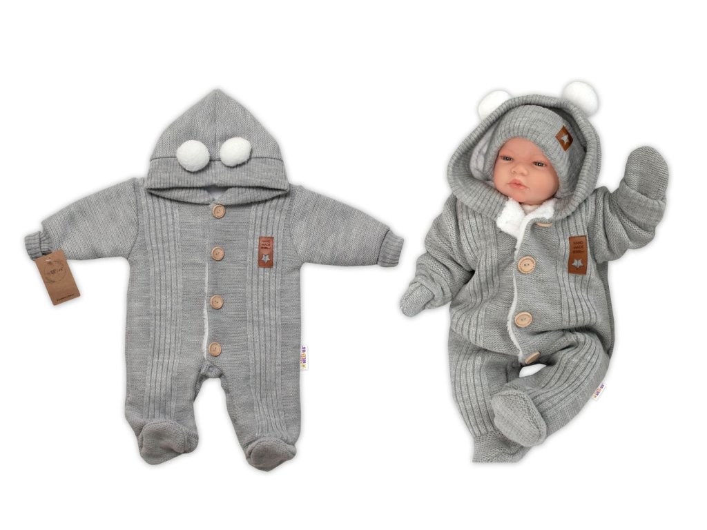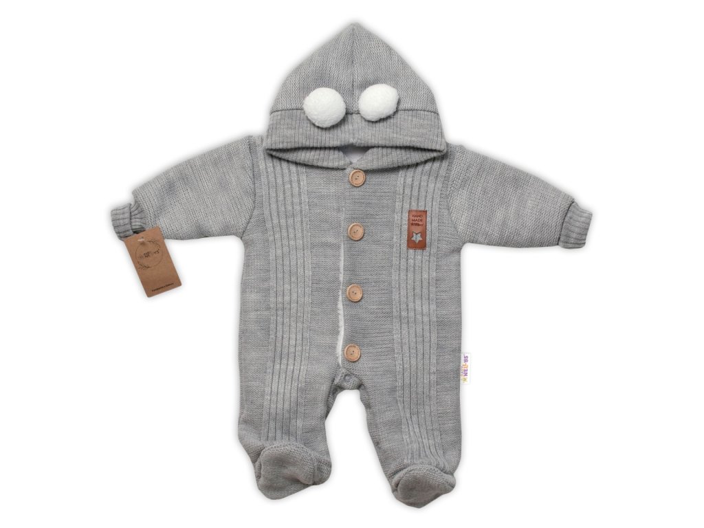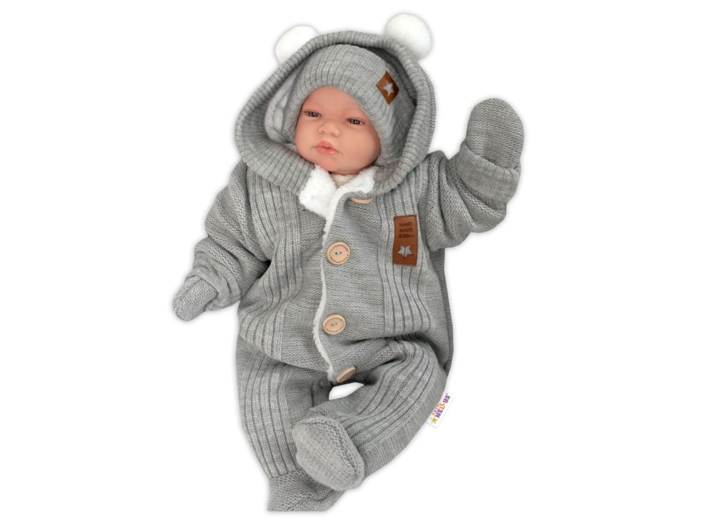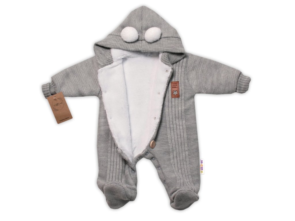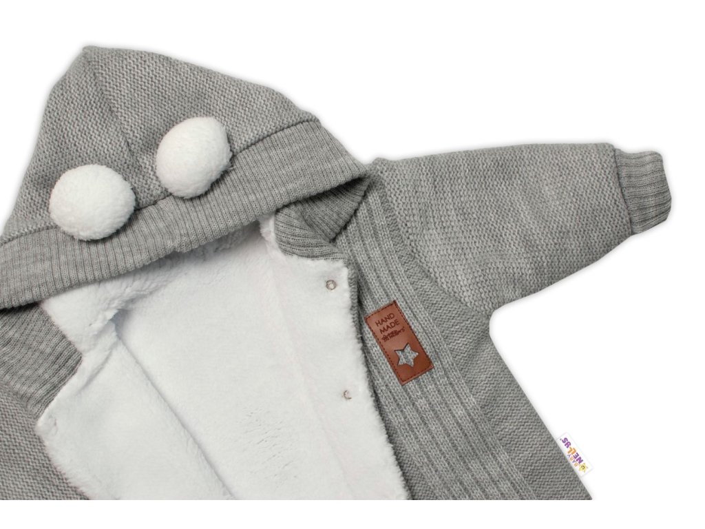 Baby Nellys Pletená kombinéza/overal LUX STAR s kožíškem - dvouvrstvá, šedá
