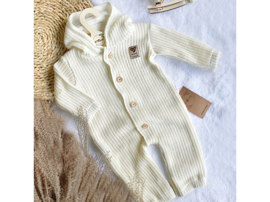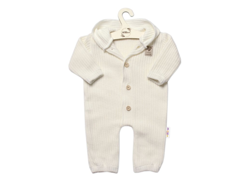 Baby Nellys Pletený overálek s kapucí a knoflíčky Hand Made, ecru