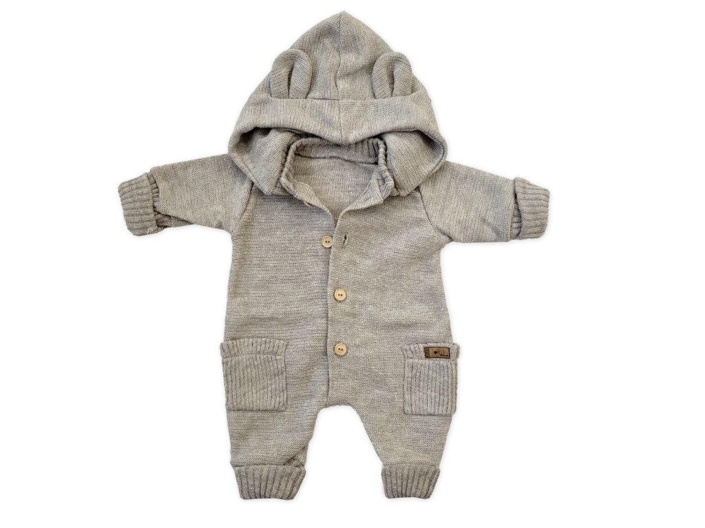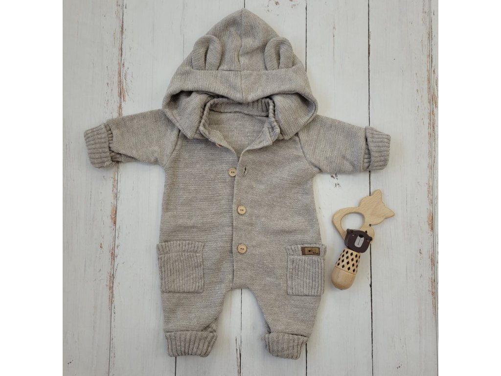 Dětský pletený overálek s odepínací kapucí - oříškový