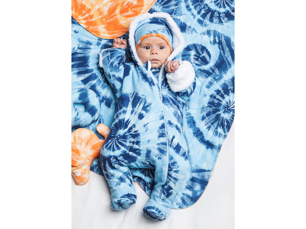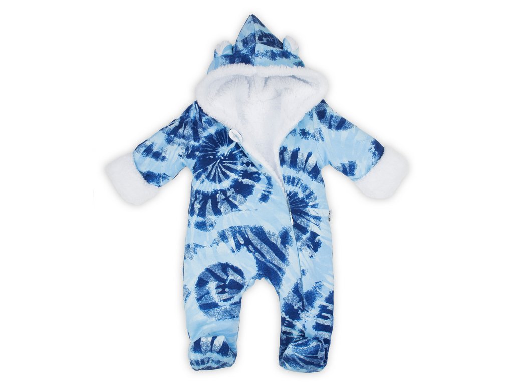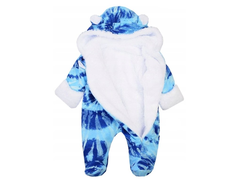 Oteplený kojenecký overal/kombinéza s kapucí, Frosty, modrá/bílá