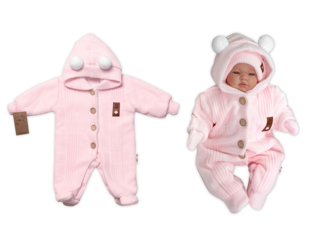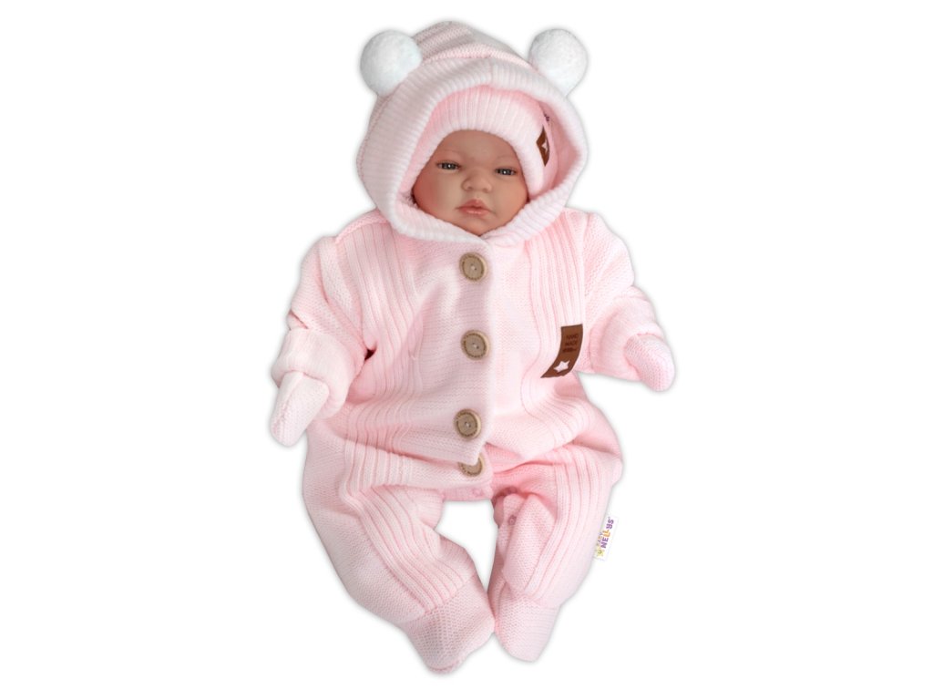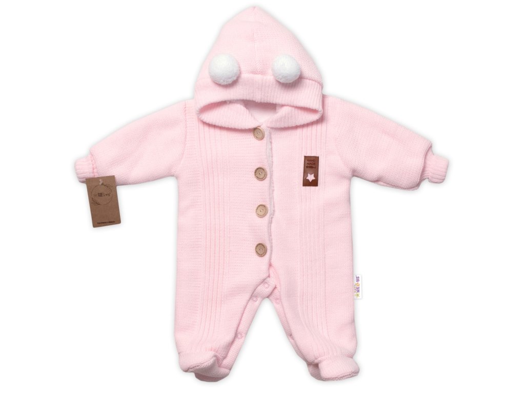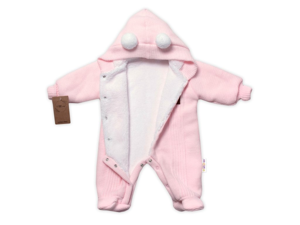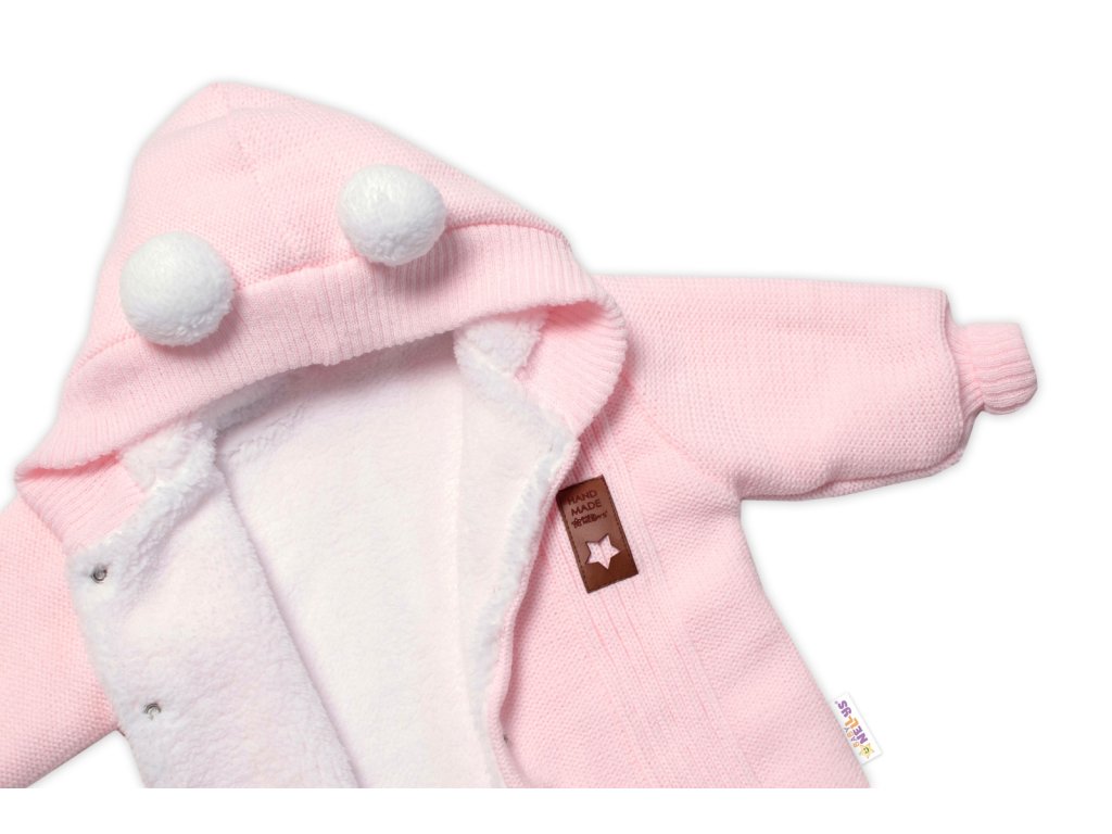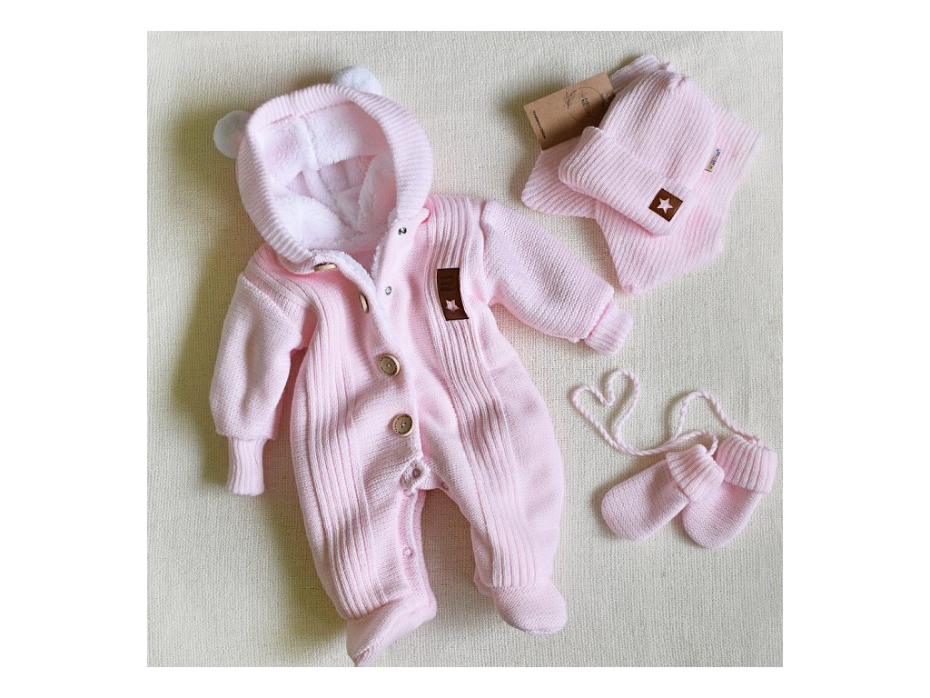 Pletená kombinéza/overal LUX STAR s kožíškem - dvouvrstvá, sv. růžová, vel. 68