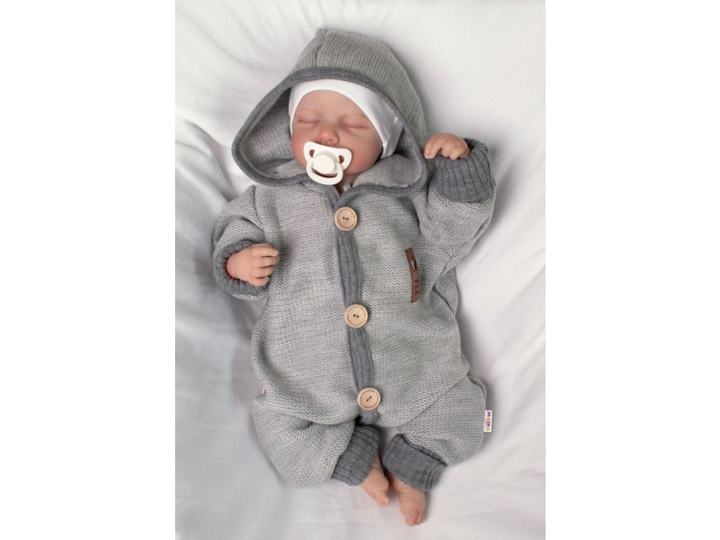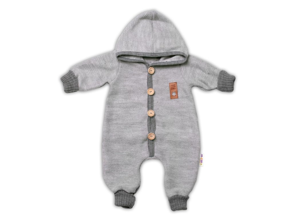 Pletený overálek s kapucí Hand Made STAR, Baby Nellys, šedý