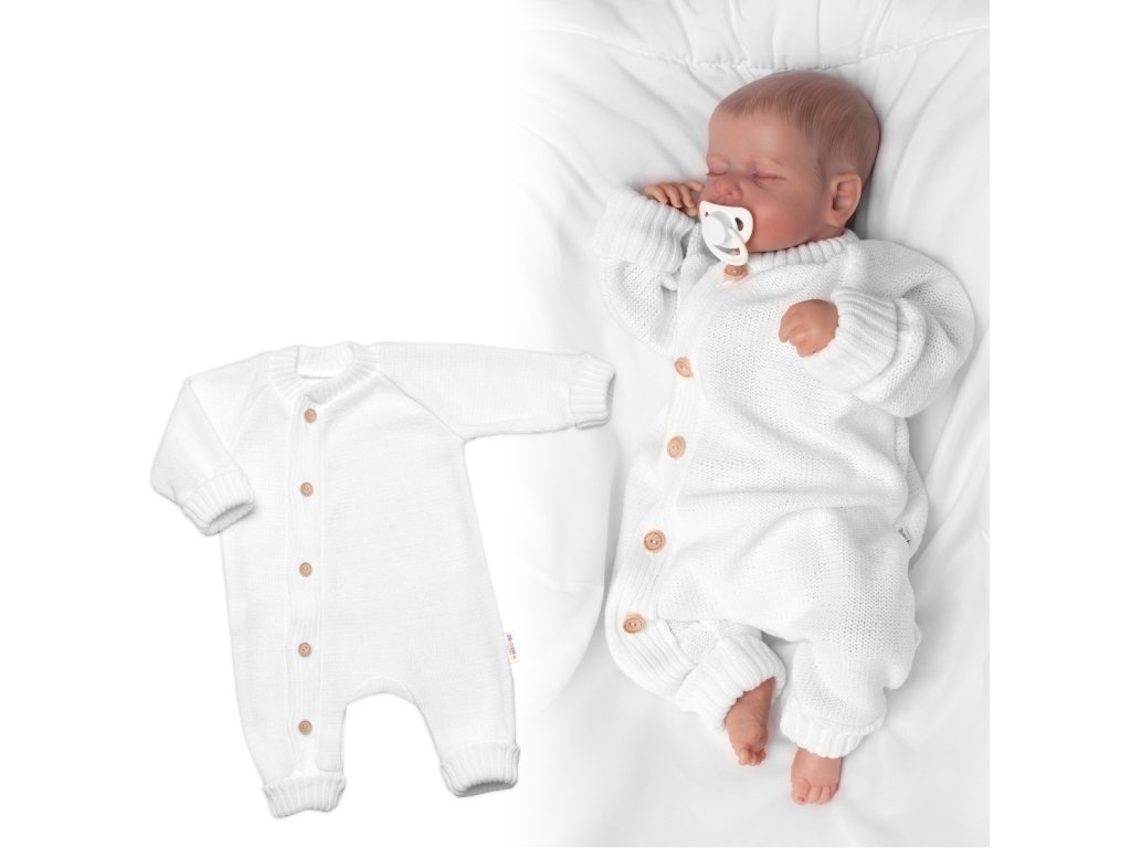 Pletený overálek s knoflíčky zapínání bokem, Hand Made, bílý