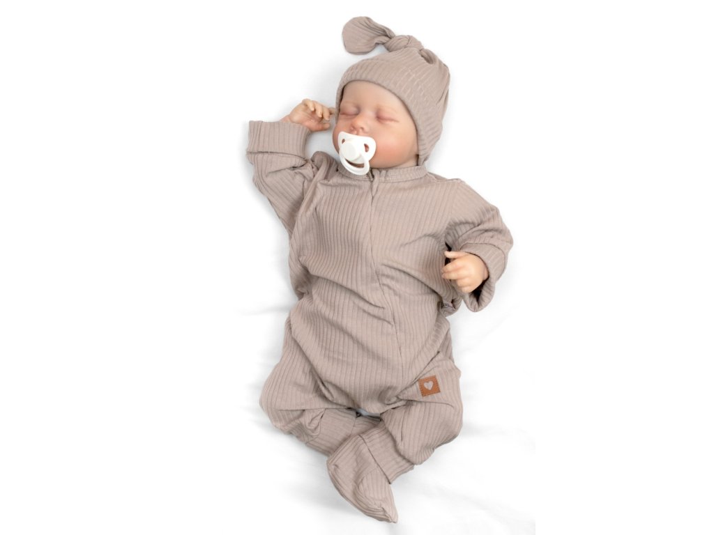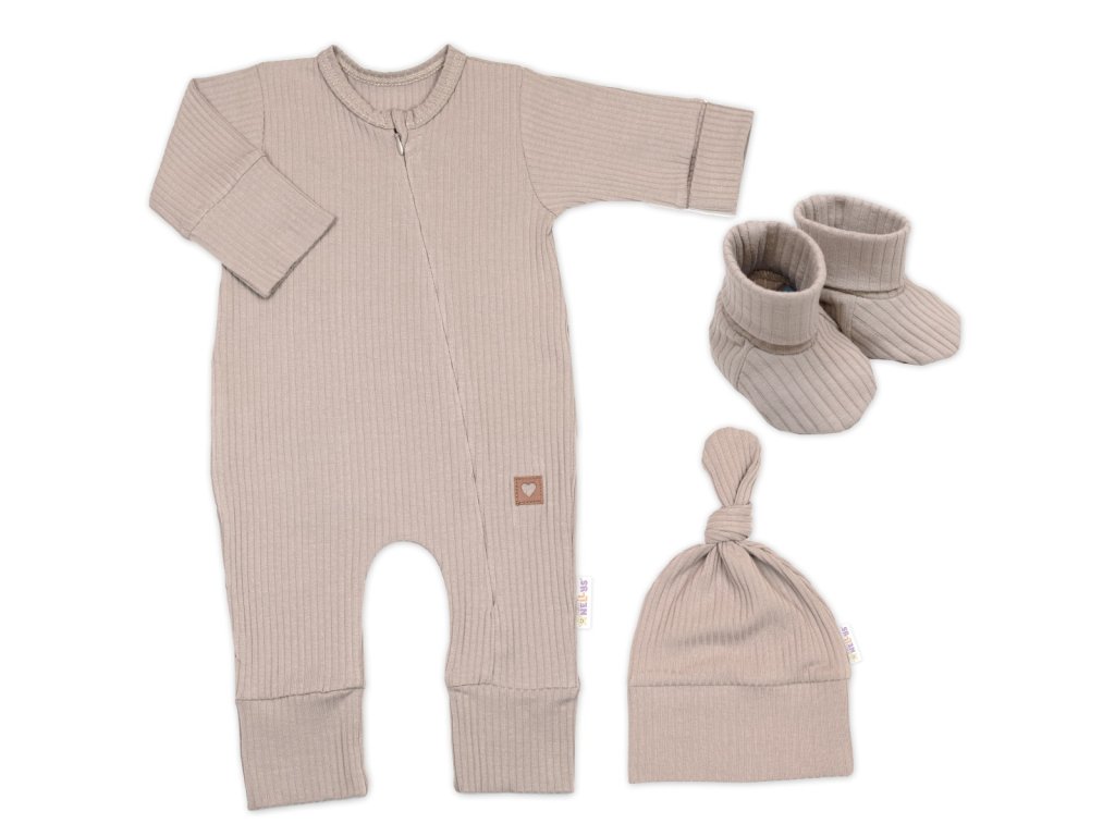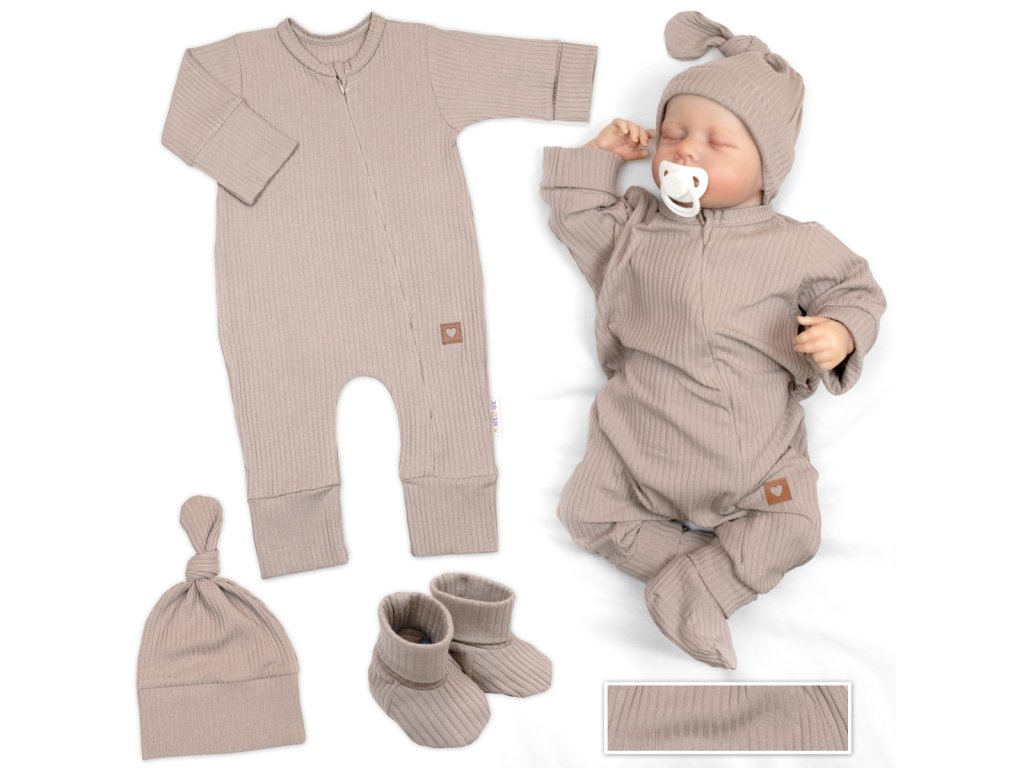 Rostoucí žebrovaný overálek, čepička a botičky, 3D, Nature - toffi